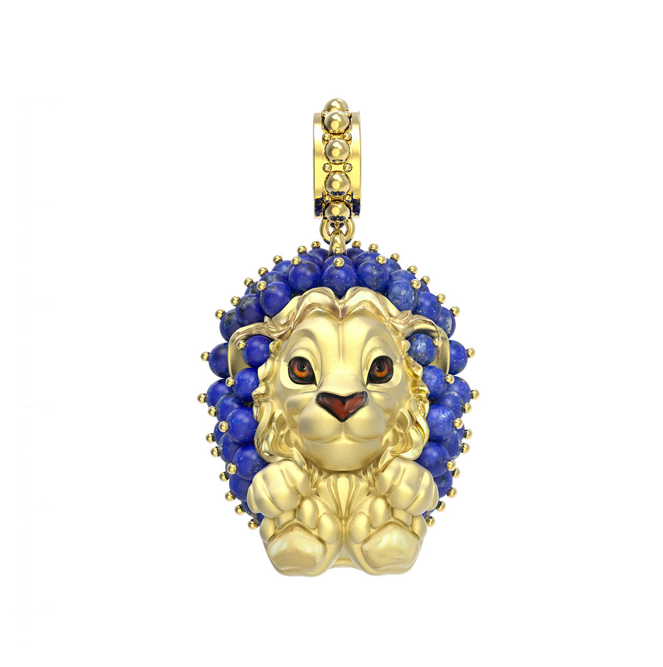 Особую выразительность подвеске придает сочетание ювелирных вставок: глубокий синий цвет натурального лазурита подчеркнут мастерским использованием эмали. Грива льва оформлена 48 вставками из лазурита круглой формы — бусина, которые создают эффектный объемный контур. Разноцветные акценты, достигнутые благодаря эмалевому покрытию, делают облик хищника живым и детализированным.