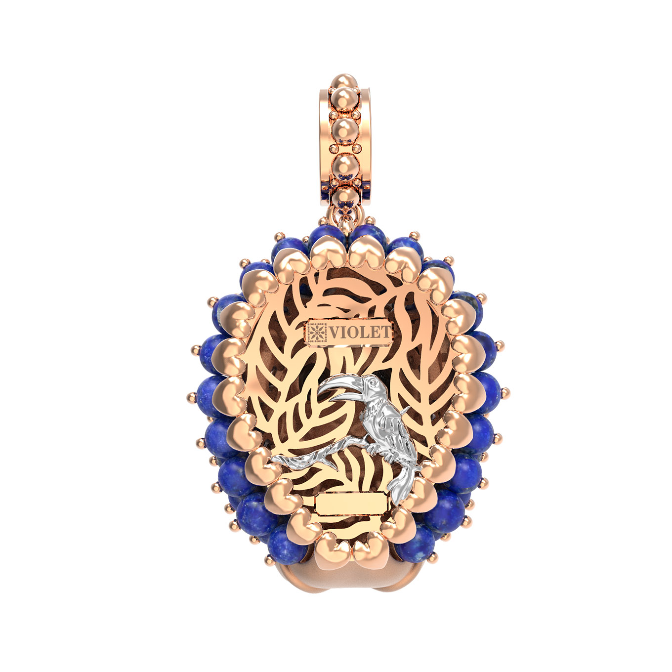 Откройте для себя воплощение ювелирного мастерства с уникальной подвеской из коллекции De luxe Premium — Львята. Это украшение в дизайне Львы создано для тех, кто ценит самовыражение и безупречный стиль. Изделие выполнено из благородного красного золота 585 пробы, которое излучает теплоту и статусность. Центральным элементом композиции является искусная работа с эмалью, придающая образу выразительность и глубину, а 48 вставок из натурального лазурита в форме аккуратных бусин создают эффектное обрамление, подчеркивая насыщенный синий цвет вставок.