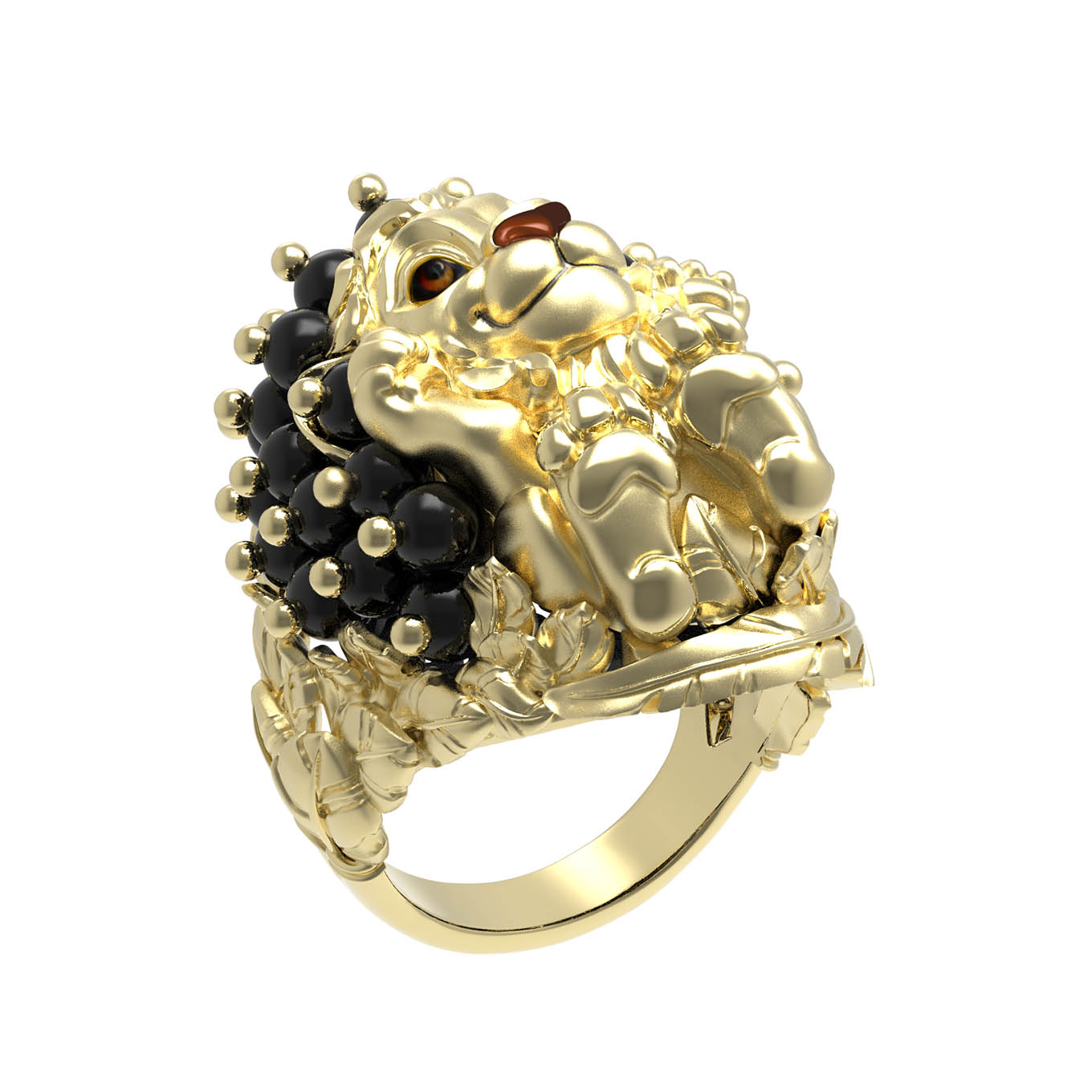 Кольцо из лимонного золота с эмалью и ониксом станет центральным акцентом вашего образа. Это эффектное ювелирное украшение из коллекции De luxe Premium — Львята выполнено в оригинальном дизайне: в центре композиции расположена выразительная фигура льва, проработанная до мельчайших деталей. Яркие акценты в виде цветной эмали придают изделию особую глубину и характер, превращая аксессуар в настоящее произведение искусства.