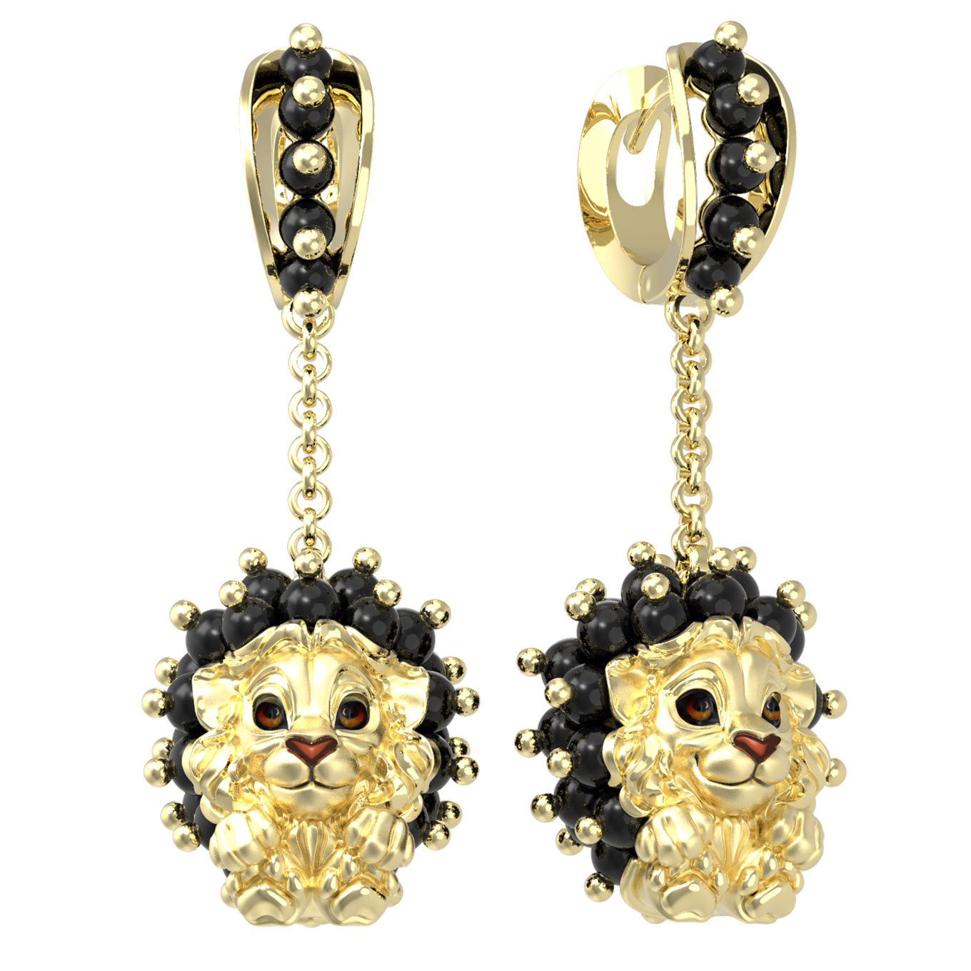 Серьги из лимонного золота 585 пробы из коллекции De luxe Premium — Львята представляют собой произведение ювелирного искусства, сочетающее в себе смелый дизайн и безупречное качество исполнения. Ключевым элементом украшения стал детализированный дизайн львов, выполненный с особой тщательностью. Изысканный образ дополняет использование эмали, придающей изделию выразительность и глубину, а также вставки из оникса черного цвета.