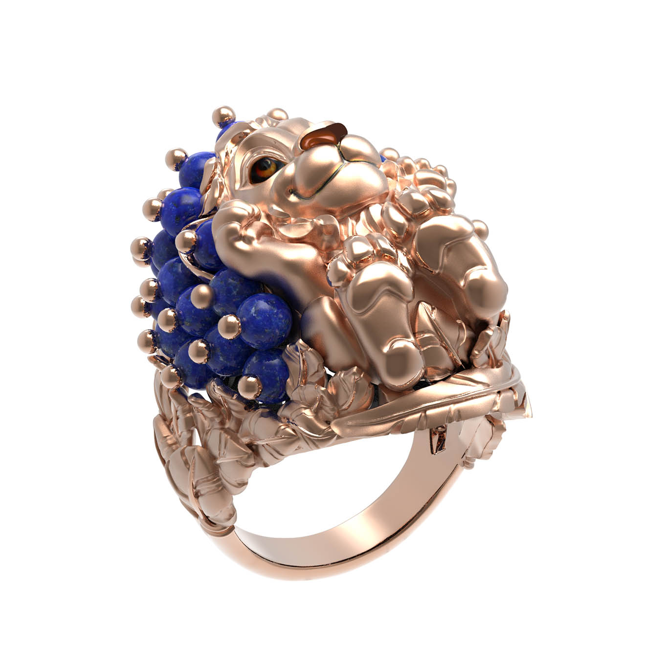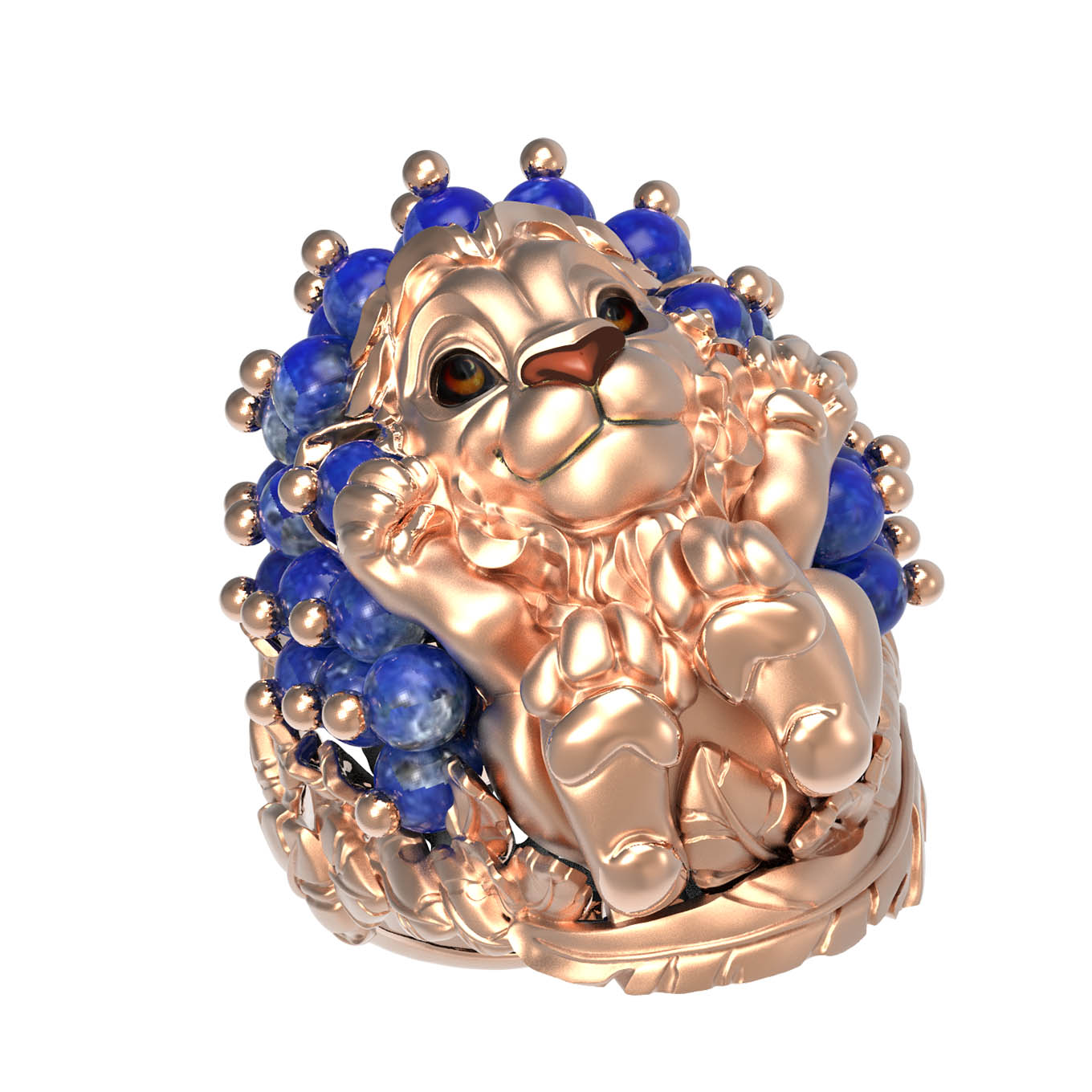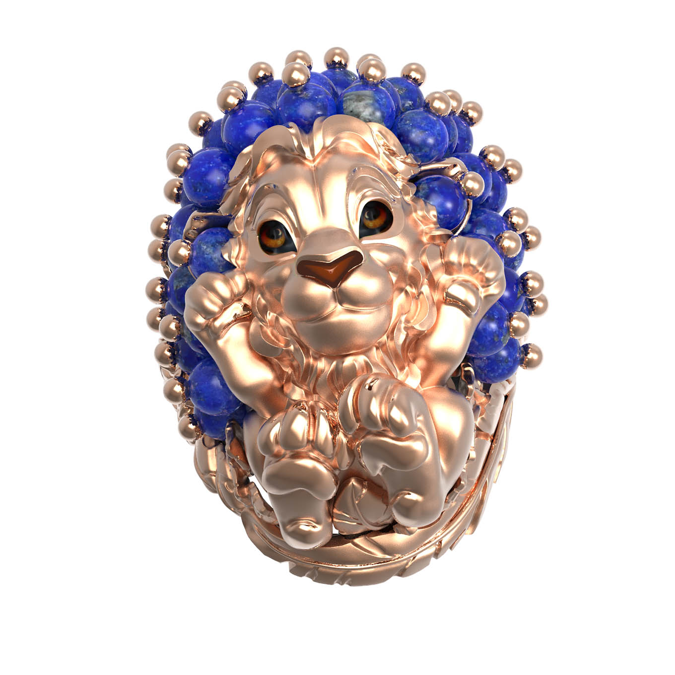 Роскошное кольцо из красного золота 585 пробы из коллекции De luxe Premium — Львята — это настоящее произведение ювелирного искусства, созданное для тех, кто ценит индивидуальность и глубокий символизм. Центральным элементом украшения выступает детально проработанный дизайн в форме льва, который притягивает взгляд своей грацией и мастерством исполнения. Этот величественный образ дополнен 35 вставками в форме бусин из натурального лазурита насыщенного синего цвета, создающими гармоничный цветовой акцент.