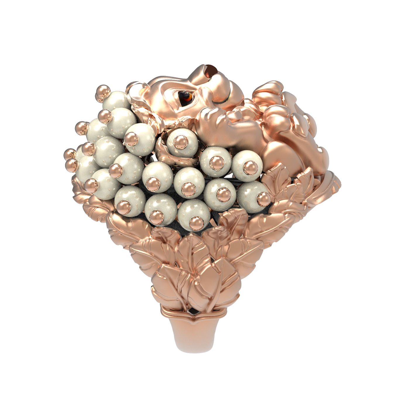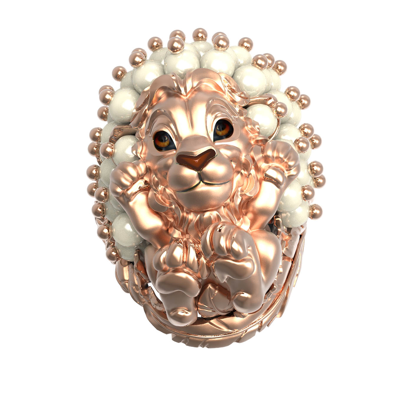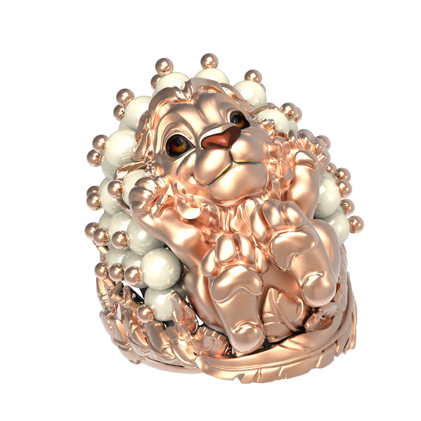 Роскошное кольцо из коллекции De luxe Premium — Львята станет акцентным украшением вашего образа, демонстрируя высокий статус и безупречный вкус. Ювелиры воплотили в этом изделии смелый дизайн в виде льва, который притягивает взгляды своей детальной проработкой и динамикой. Кольцо выполнено из красного золота 585 пробы, чей теплый цвет подчеркивает благородство металла. Декор дополнен художественной эмалью и 35 вставками круглого жемчуга белого цвета, которые создают эффектное сияние и гармонично сочетаются с разноцветными деталями оформления.