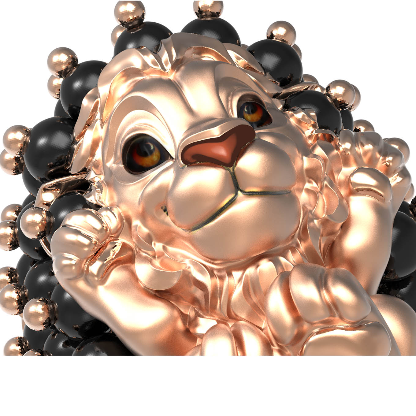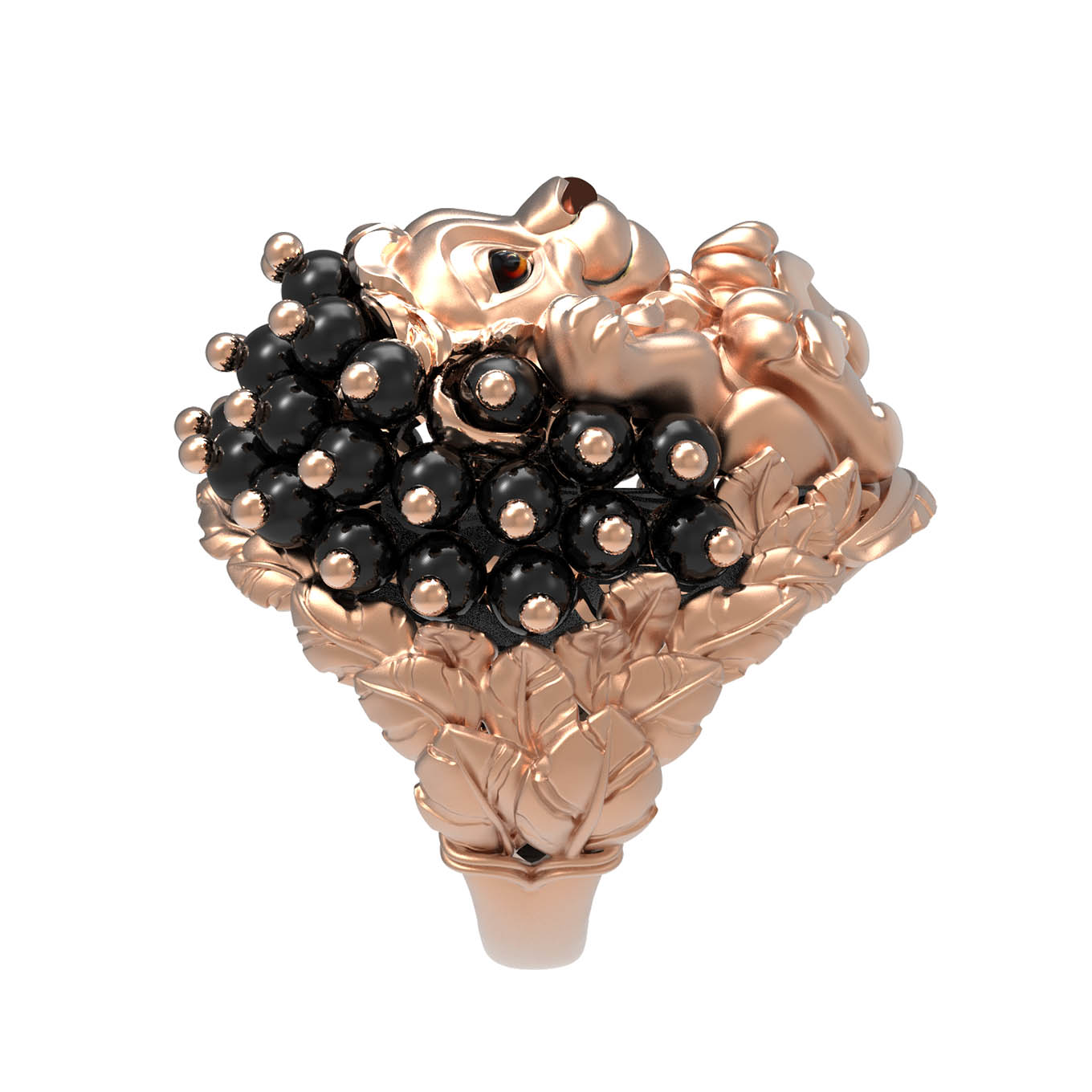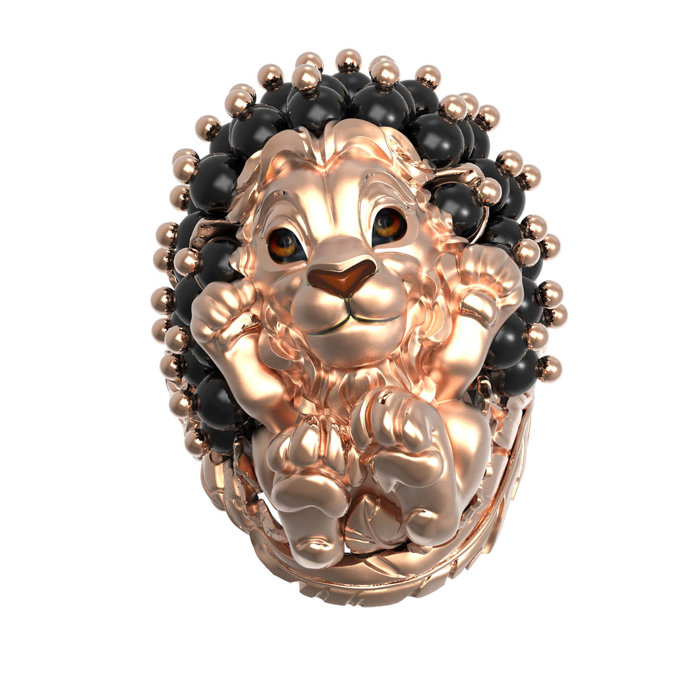 Мастерство ювелиров позволило гармонично соединить металл с изысканным декором: изделие украшено 35 вставками из черного оникса в форме бусин. Контрастное сочетание красного золота и темного оникса создает выразительный визуальный эффект. Дополнительную глубину и художественную выразительность придает вставка из цветной эмали, подчеркивающая детализированный образ льва. Это стильное кольцо одинаково хорошо подходит как для женщин, так и для мужчин, предпочитающих необычные и премиальные аксессуары.
