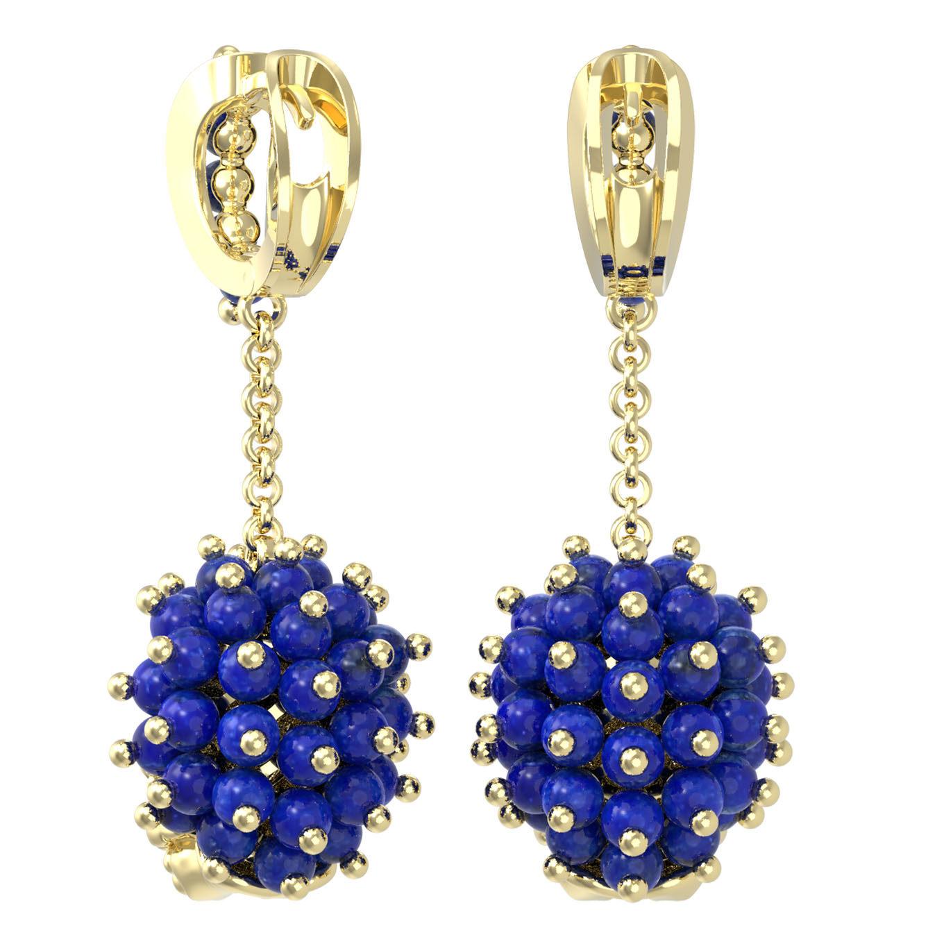 Ключевой особенностью изделия является уникальный дизайн в виде грациозных львов. Фигурки выполнены с невероятной детализацией, а в качестве дополнения использована изящная эмаль, добавляющая акценты и выразительность. Основным украшением служат 80 вставок из натурального лазурита. Глубокий синий цвет камней в форме бусин эффектно контрастирует с лимонным золотом, создавая гармоничное и статусное сочетание.