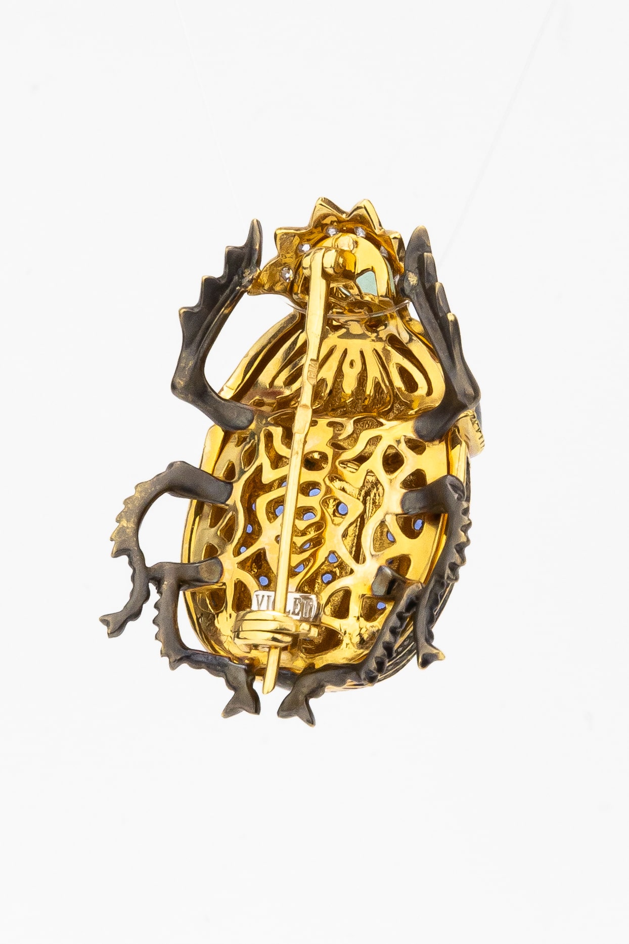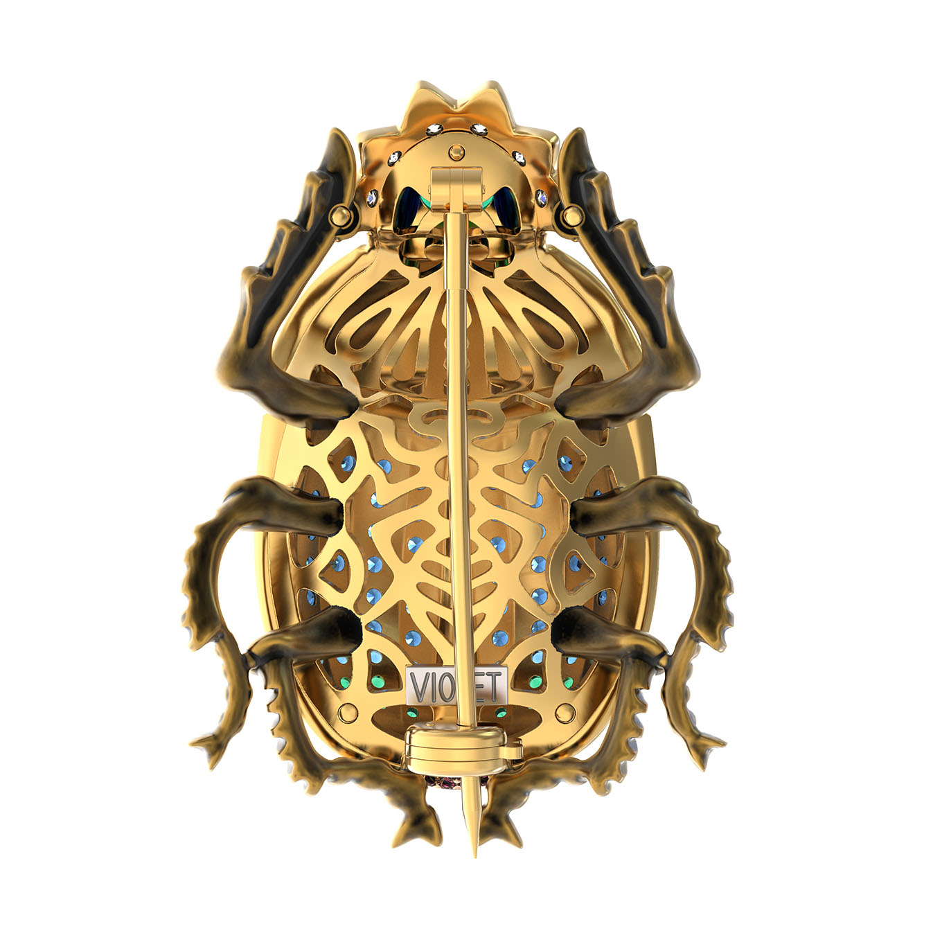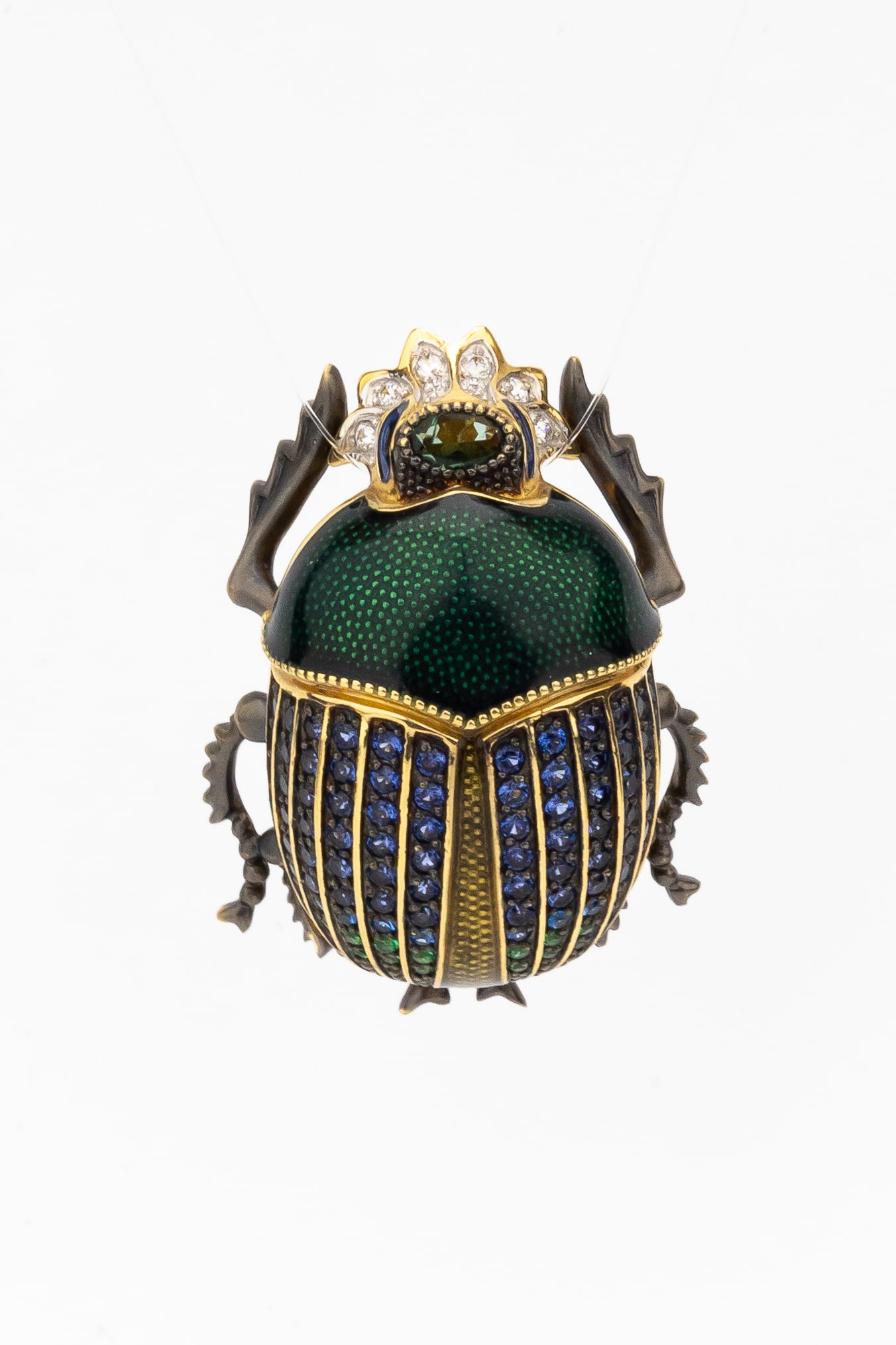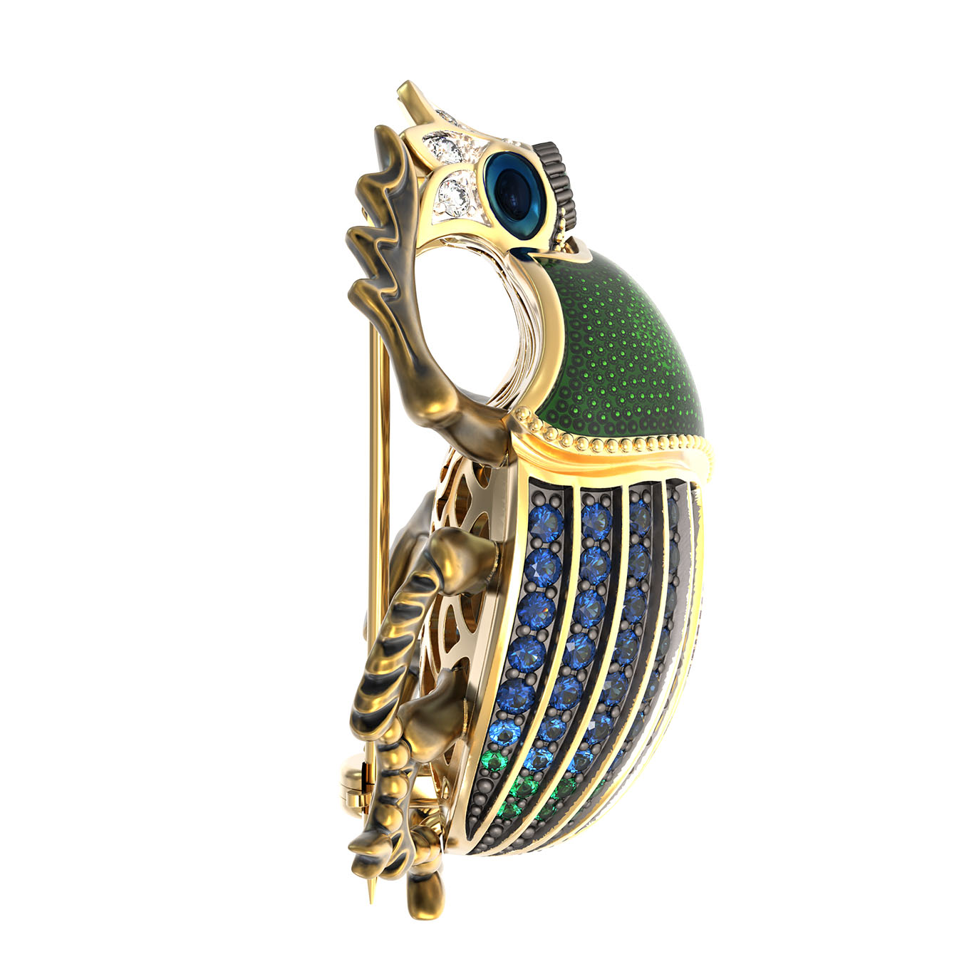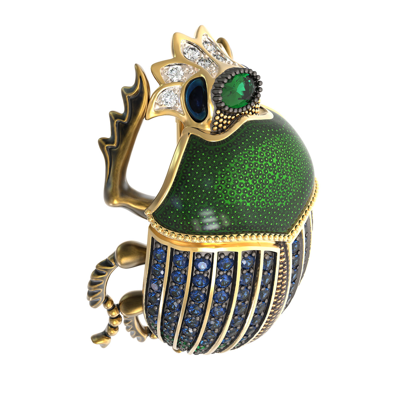 Эффектная брошь из лимонного золота 585 пробы из коллекции De Luxe — Скарабеи станет символичным украшением для ценителей эксклюзивного дизайна. Мастера ювелирного дела воплотили в жизнь образ скарабея, создав изысканный аксессуар в стиле насекомые, который одинаково гармонично дополнит образ как для женщин, так и для мужчин.