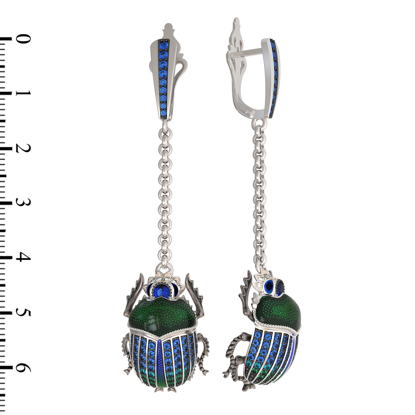 Серьги из белого золота c эмалью, фианитом и сапфиром
