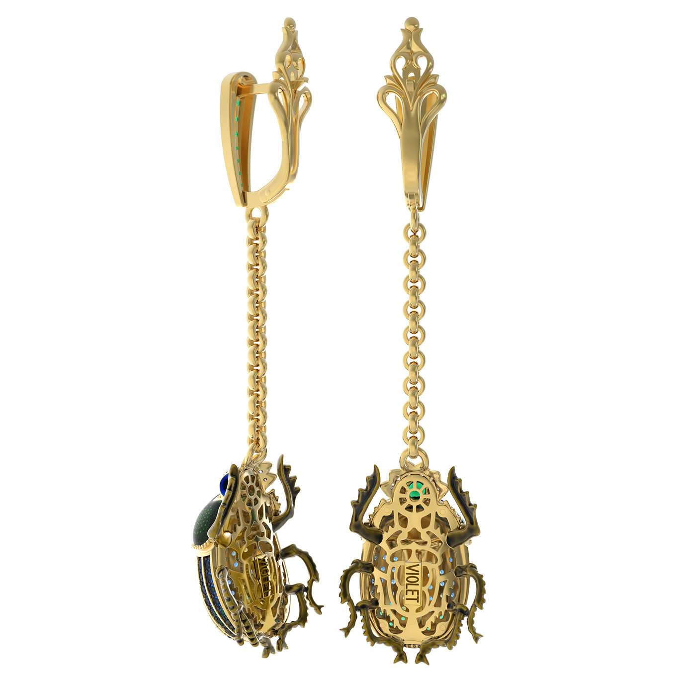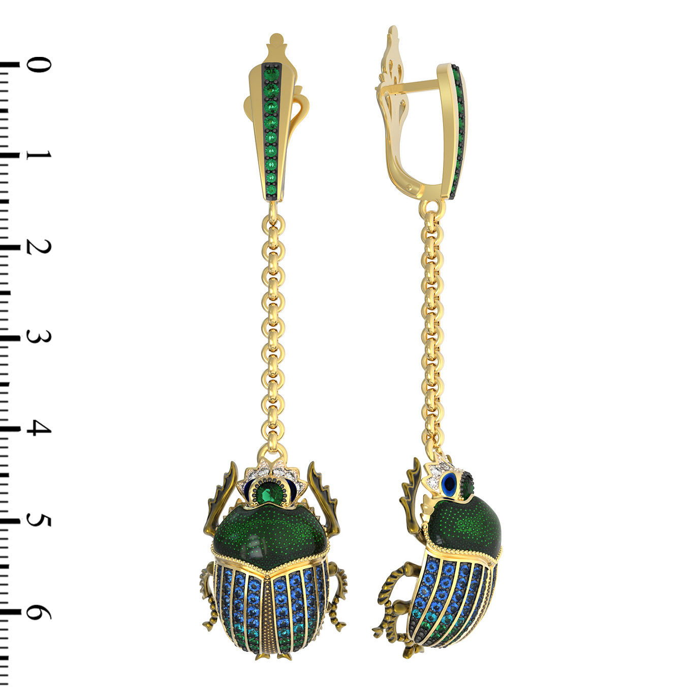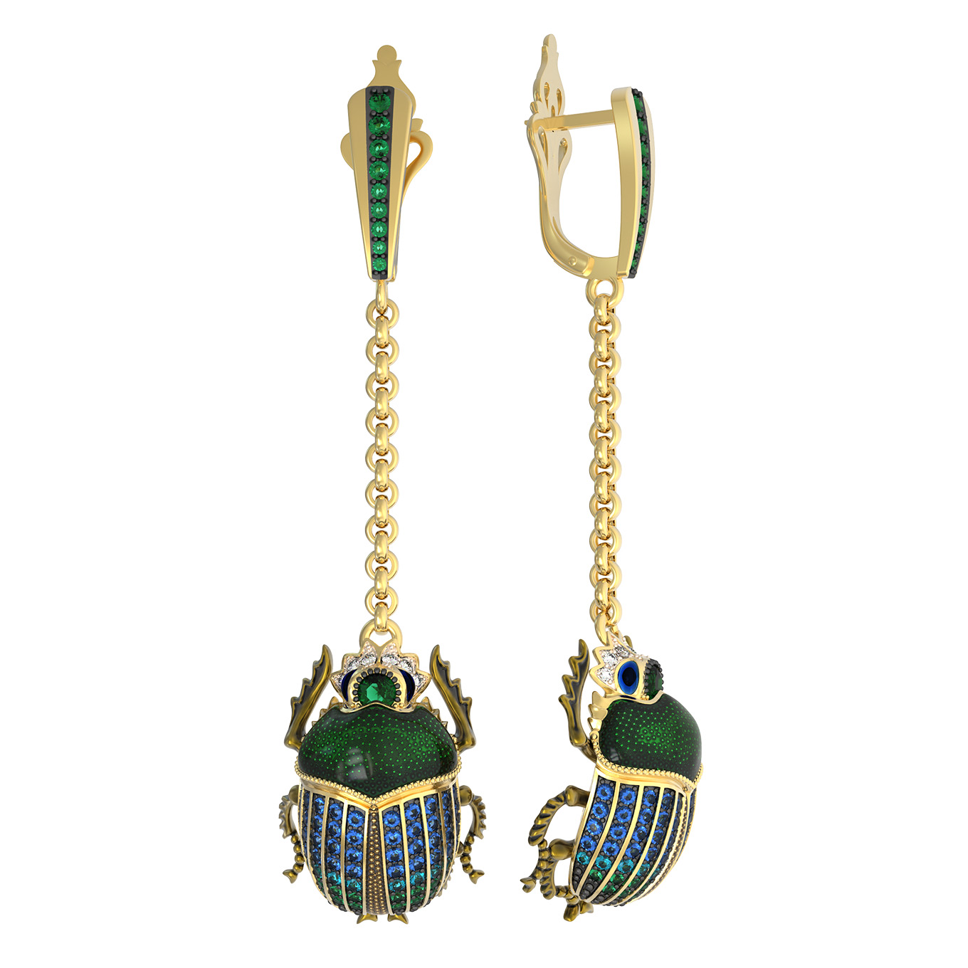 Длинные серьги-подвески на цепочке эффектно движутся при каждом шаге, привлекая внимание к лицу и подчеркивая безупречный вкус своей обладательницы. Дизайн в стиле насекомые — это смелый выбор, который объединяет классическую роскошь и современную эстетику. Данные серьги универсальны: они подойдут как для женщин, так и для смелых мужских образов, стремящихся к оригинальности. Изделие также может стать частью гармоничного комплекта, дополняя другие украшения из серии De Luxe — Скарабеи.