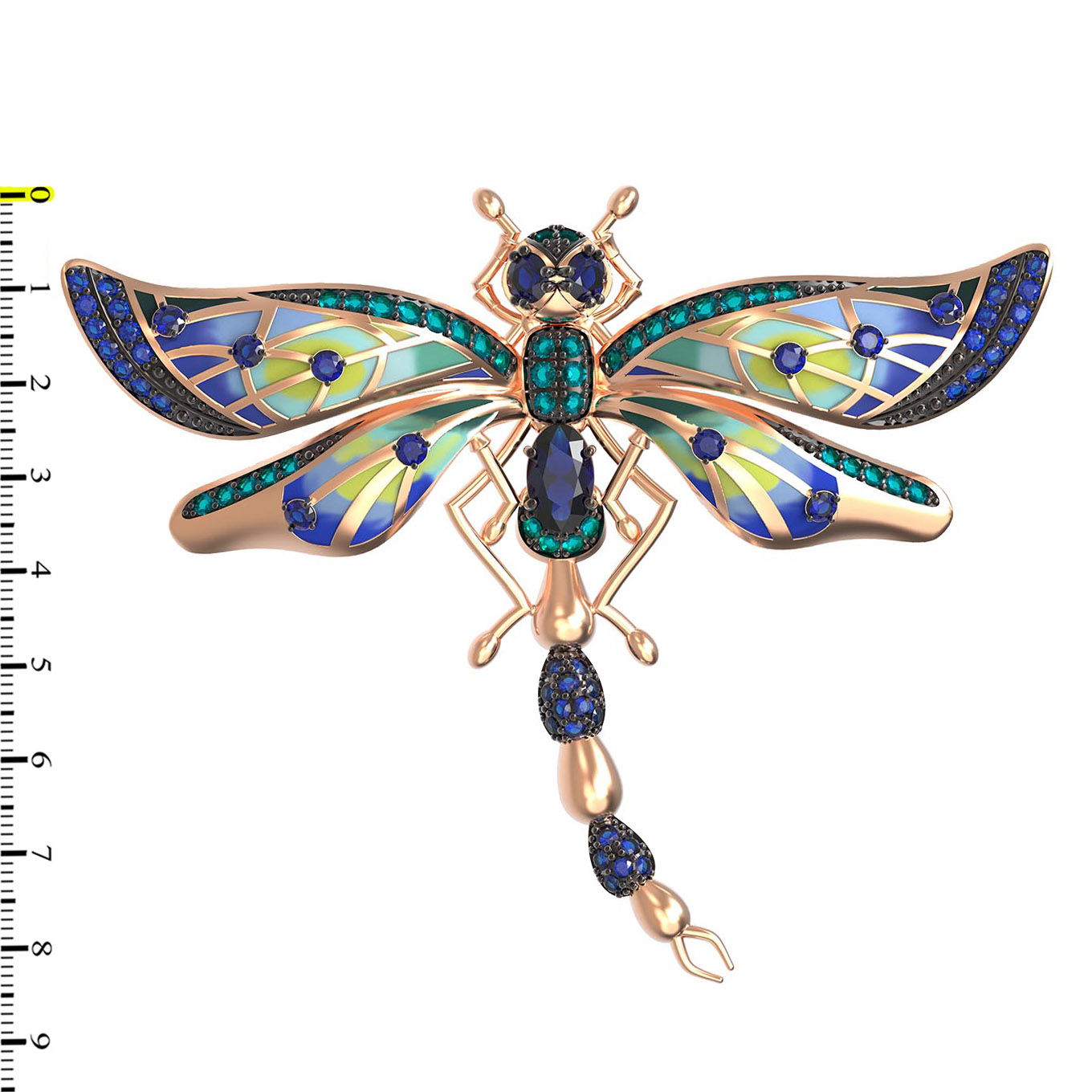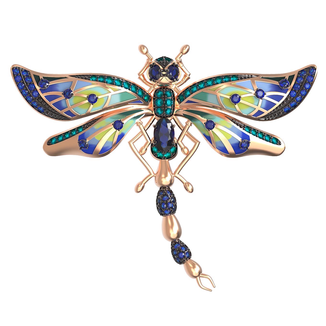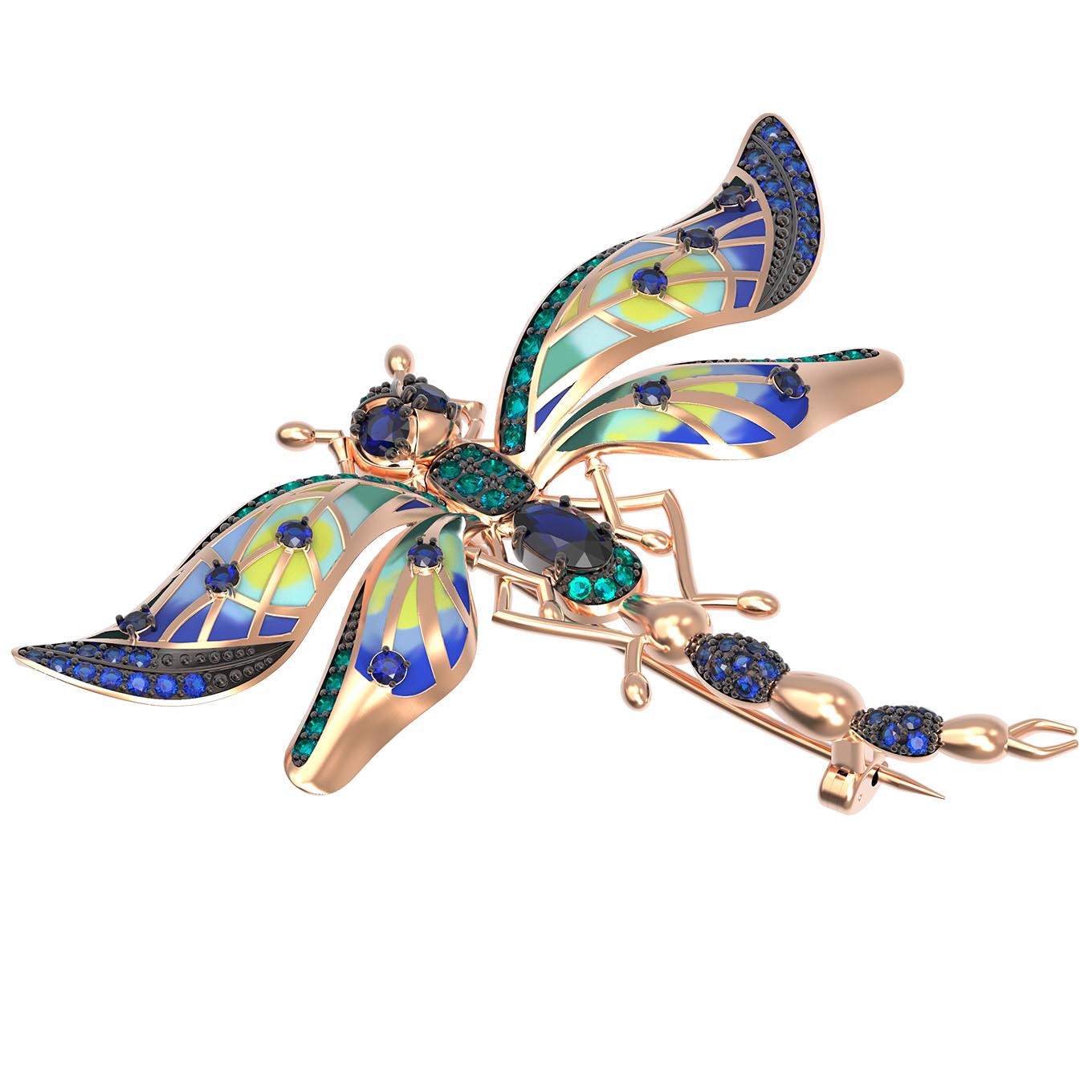 Роскошная брошь в виде стрекозы из коллекции De Luxe — Стрекозы станет акцентным украшением вашего образа. Это утонченное ювелирное изделие выполнено из красного золота 585 пробы и отличается сложным дизайном, вдохновленным красотой насекомых. Тонкая работа ювелиров подчеркивает изящные линии крыльев, которые украшены художественной эмалью зеленых и синих оттенков, создавая эффект переливающегося оперения.