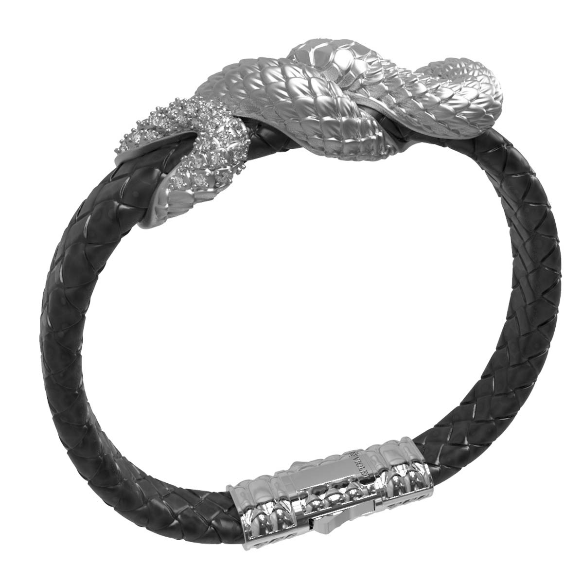 Ищете украшение, которое подчеркнет вашу индивидуальность и статус? Представляем эксклюзивный браслет из коллекции De Luxe — Змеи, выполненный в смелом дизайне Змеи. Это ювелирное изделие станет центральным элементом вашего образа, привлекая восхищенные взгляды своей необычной фактурой и глубоким контрастом материалов. Основа браслета — прочный черный шнурок, который эффектно сочетается с благородным белым золотом 585 пробы.