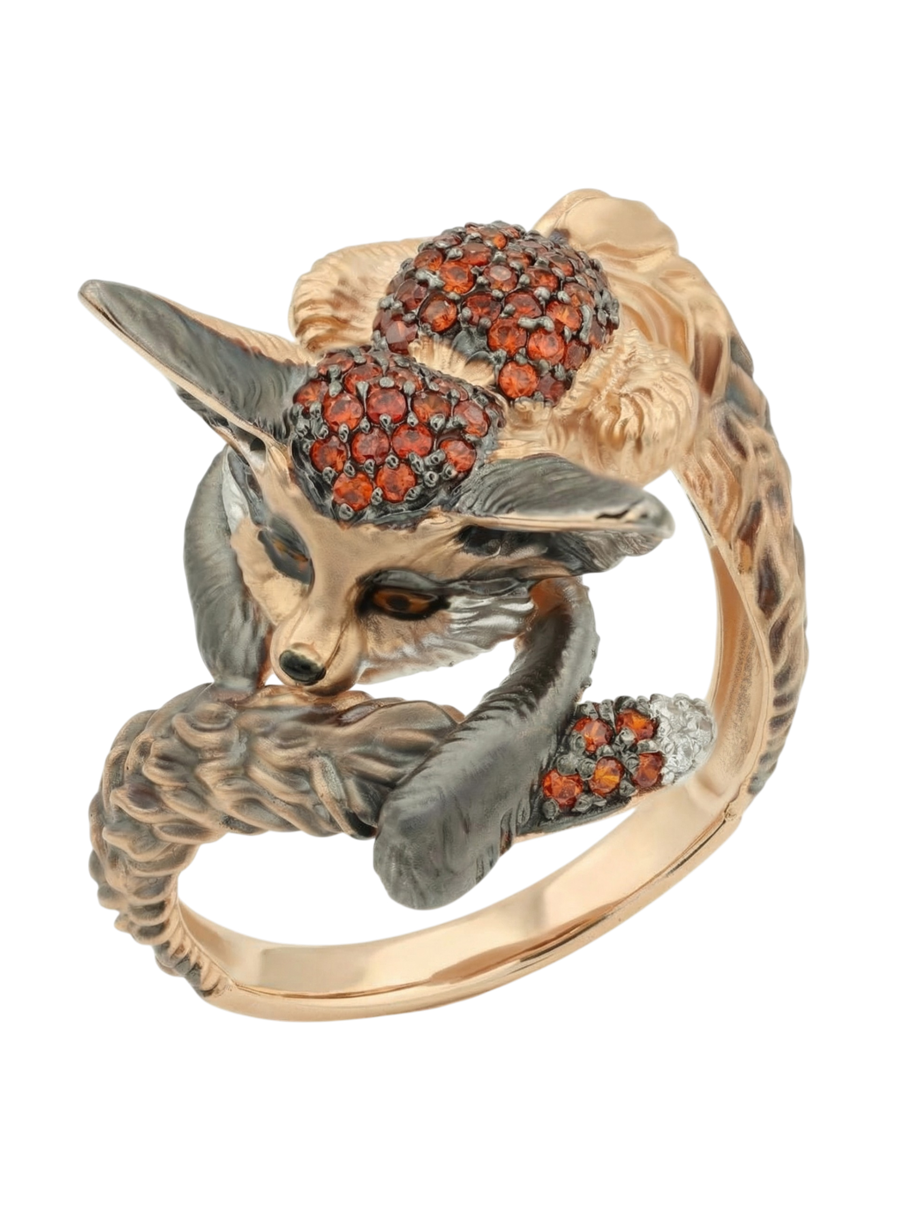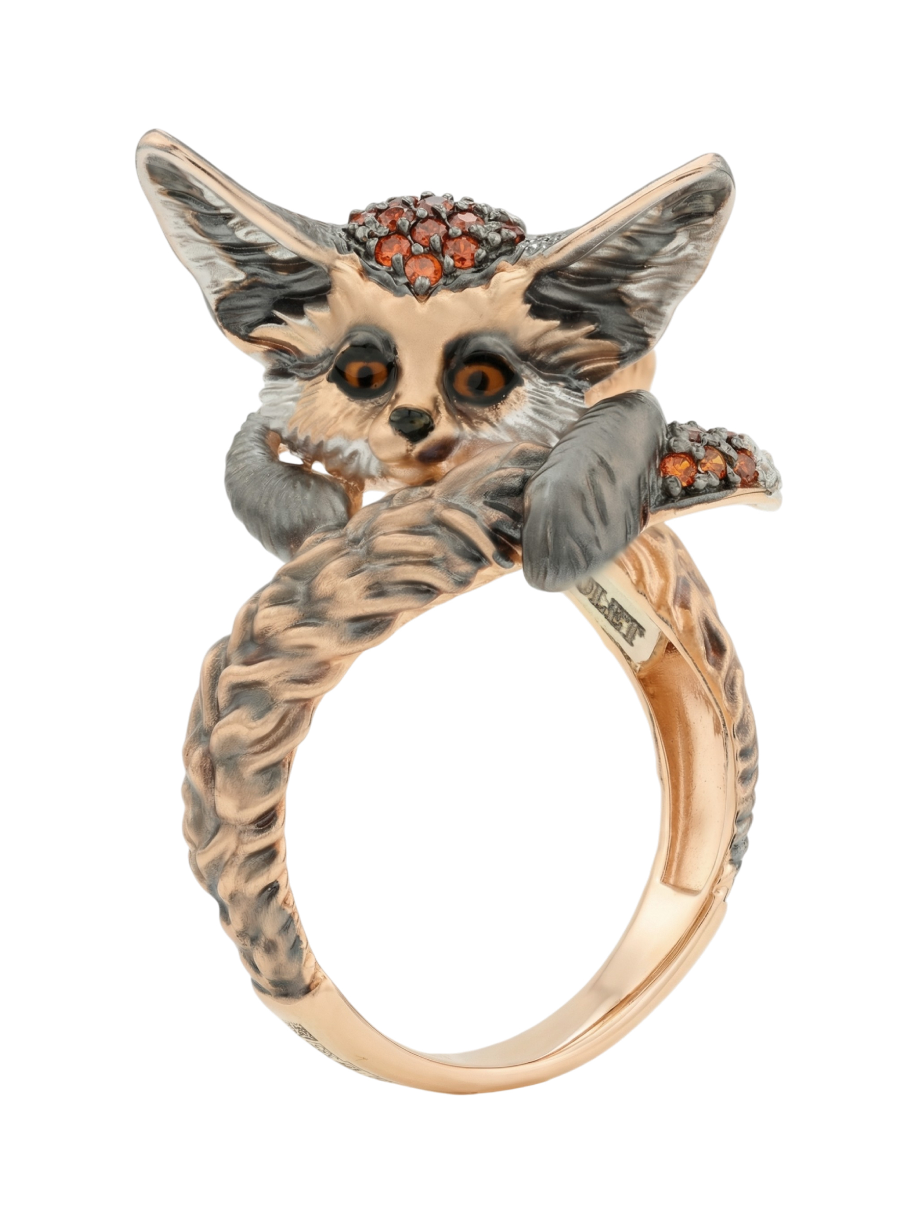 Оригинальное кольцо из красного золота 585 пробы из коллекции De Luxe — Лисёнок станет ярким акцентом в вашем образе. Дизайн украшения, вдохновленный грацией лисы, мастерски воплощен в благородном металле. Детализированная фигурка лисёнка выполнена с особой тщательностью, подчеркивая текстуру шерсти и выразительный взгляд.