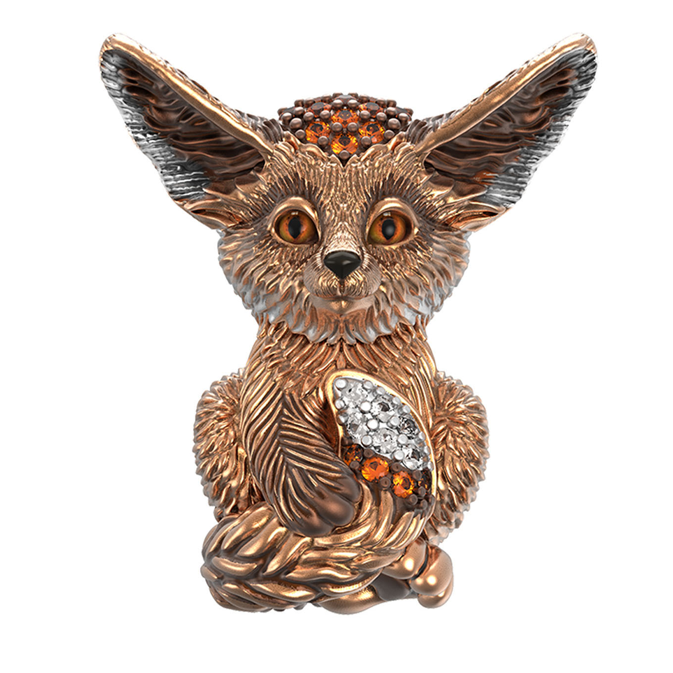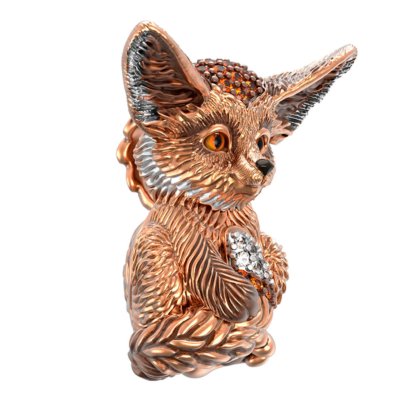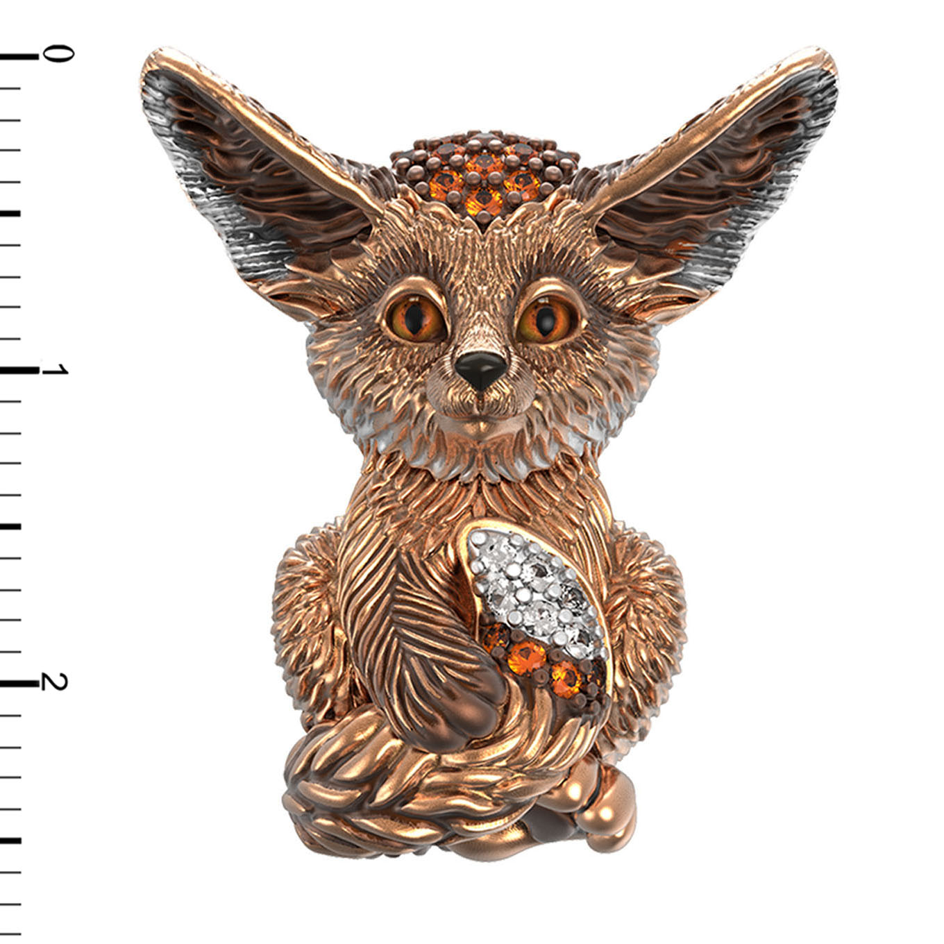 Особую выразительность подвеске придает ювелирная эмаль глубоких коричневых и оранжевых тонов, создающая объем и фактуру меха. Декоративное оформление дополнено 32 сверкающими фианитами круглой формы, которые эффектно акцентируют детали изделия, добавляя ему динамичного блеска. Качественная проработка каждого элемента делает этот кулон настоящим произведением искусства.