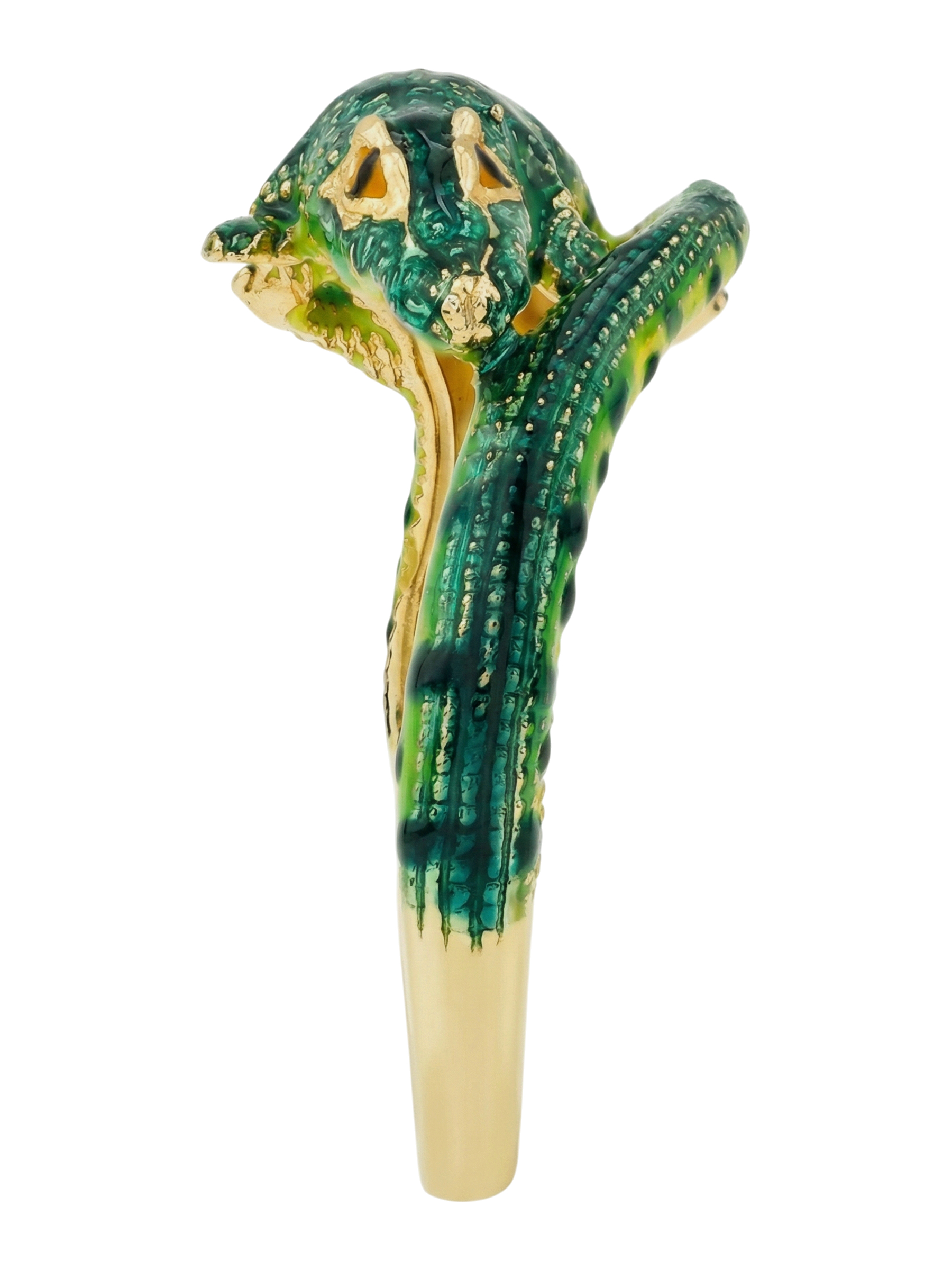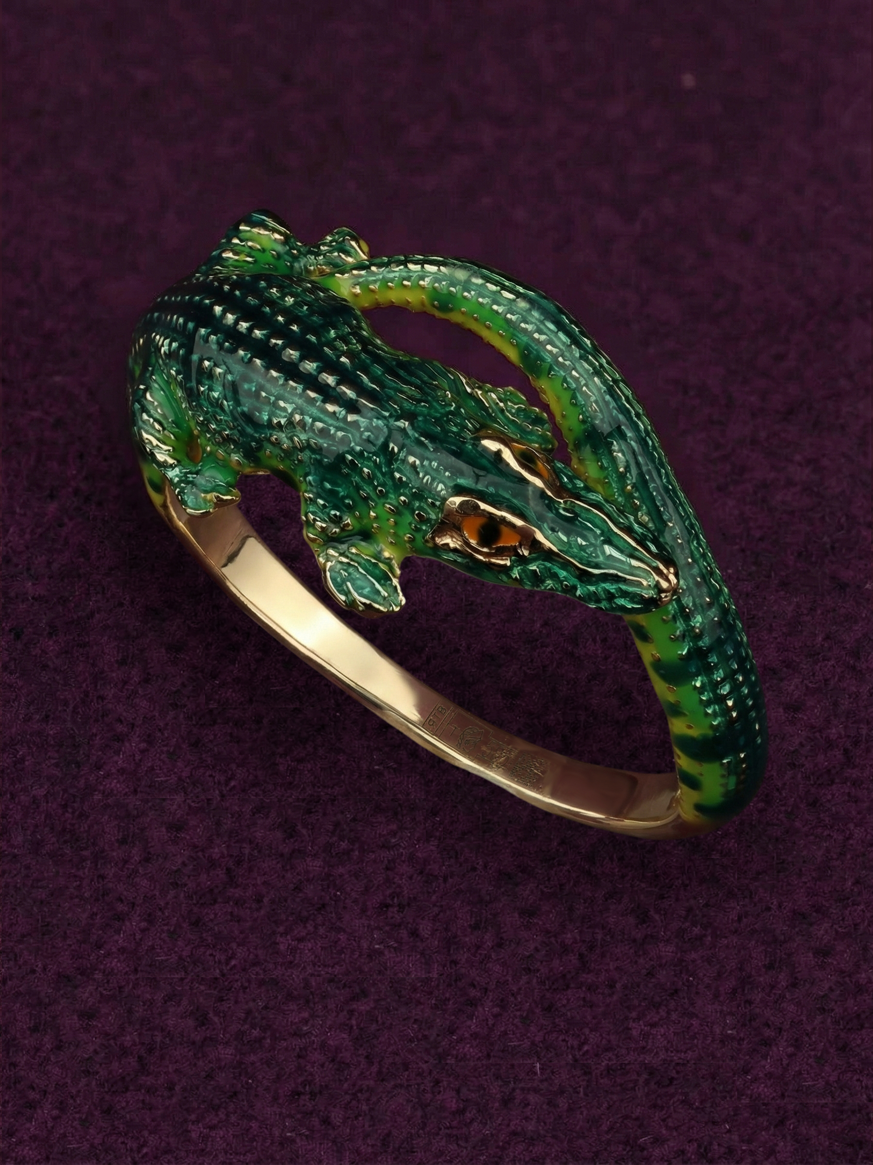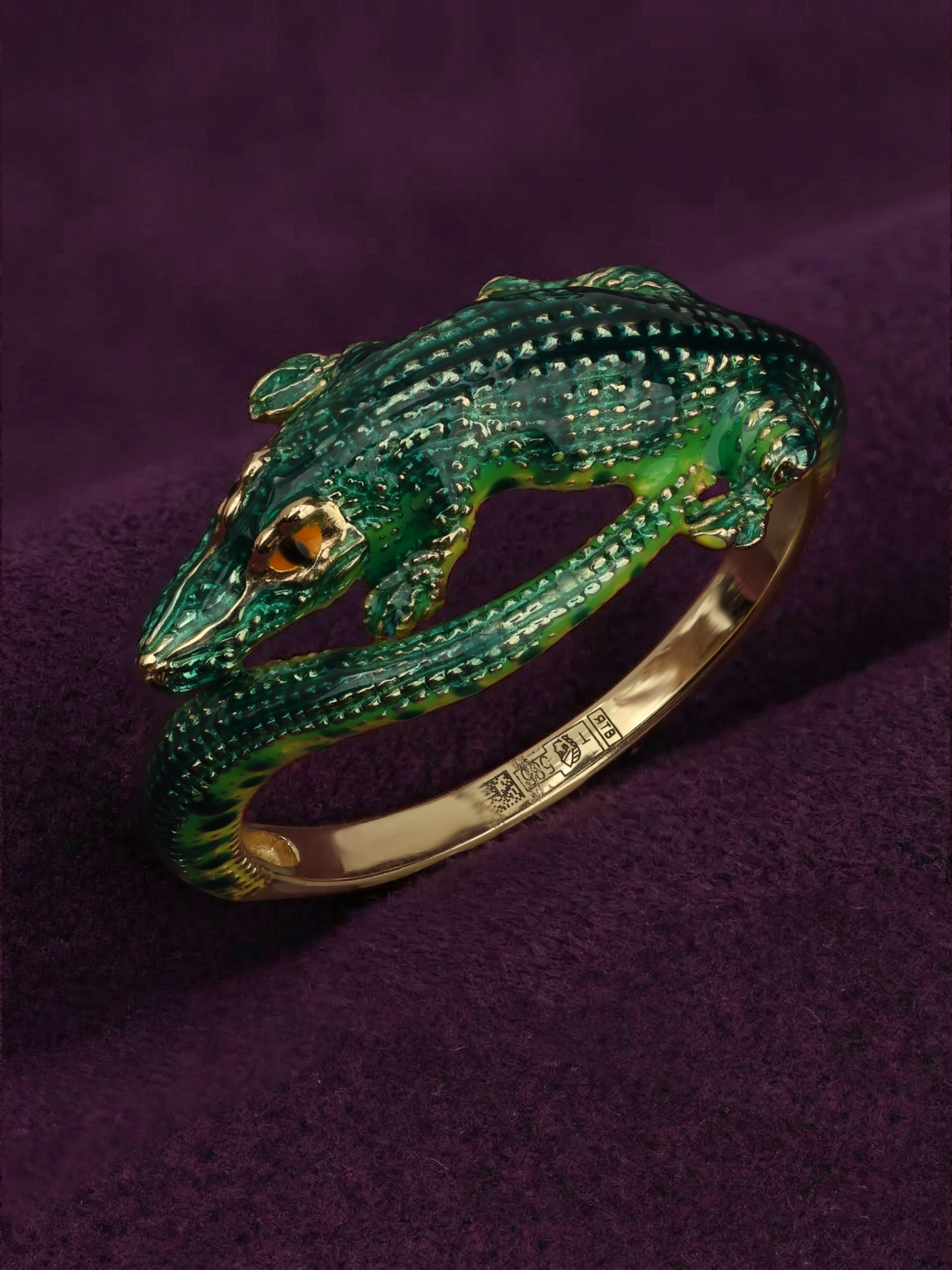 Мастерство ювелиров позволило оживить образ с помощью сложной работы с разноцветной эмалью. Насыщенный зеленый цвет, которым покрыто тело хищника, контрастирует с драгоценным металлом, делая аксессуар по-настоящему заметным. Это кольцо станет идеальным выбором как для женщин, так и для мужчин, которые предпочитают оригинальные и запоминающиеся украшения в своем гардеробе.