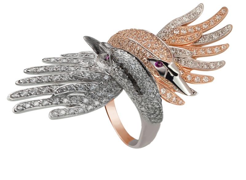 Роскошное кольцо из красного золота 585 пробы, входящее в коллекцию De Luxe — Лебединая верность, станет воплощением грации и высокого стиля на вашей руке. Дизайн изделия выполнен в форме лебедей, символизирующих верность и чистоту чувств. Ювелиры детально проработали образ птиц, создавая украшение, которое приковывает внимание своей выразительностью и искусным исполнением. Это кольцо подходит как для женщин, так и для мужчин, предпочитающих необычные и статусные аксессуары.