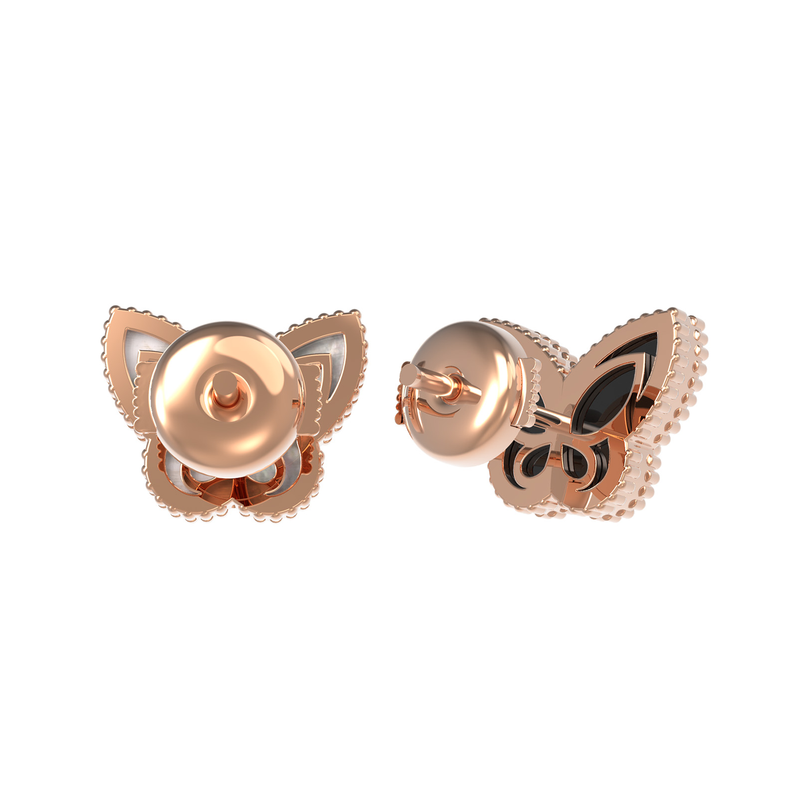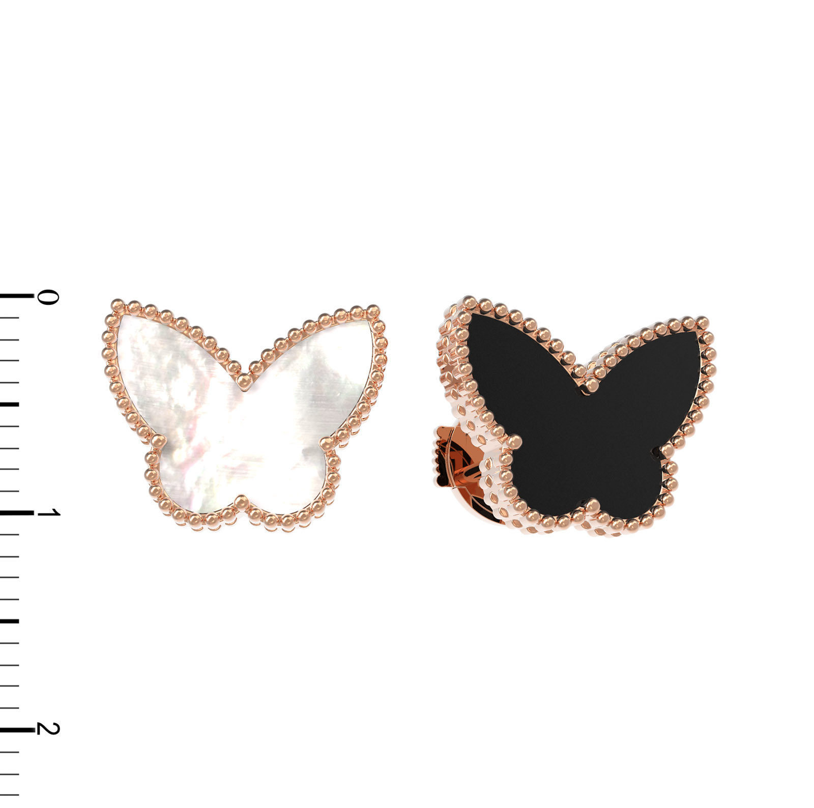 Эти серьги относятся к коллекции De Luxe — Бабочки и являются универсальным аксессуаром. Благодаря продуманному дизайну они подходят как для женщин, так и для мужчин, предпочитающих современные ювелирные украшения с характером. Золото красного цвета гармонично сочетается с вставками: белым перламутром и угольно-черным ониксом. Детальная проработка контуров бабочек делает аксессуар заметным и выразительным.