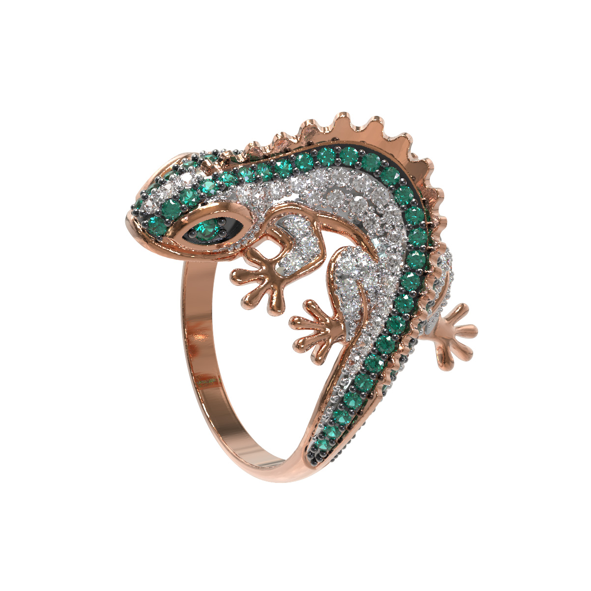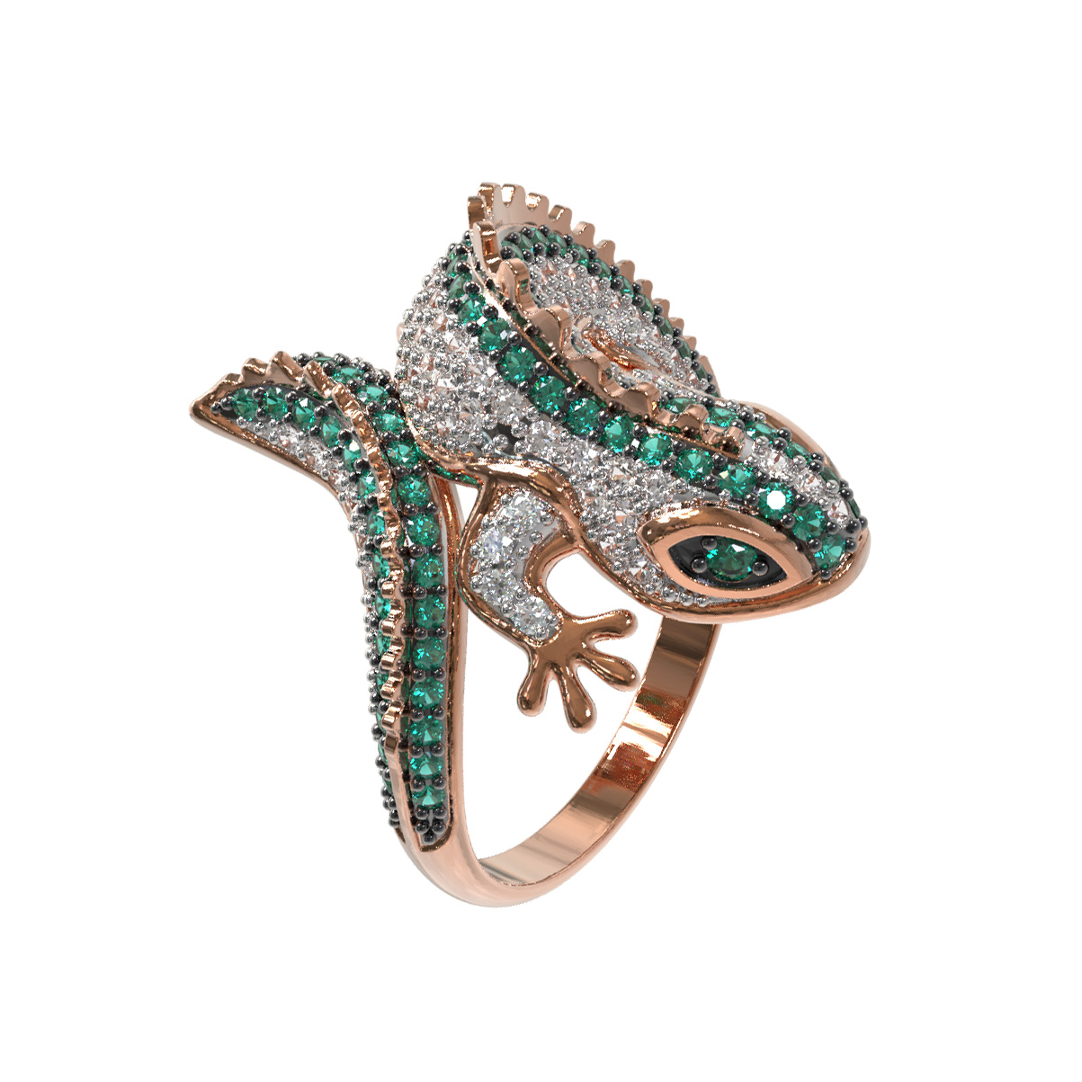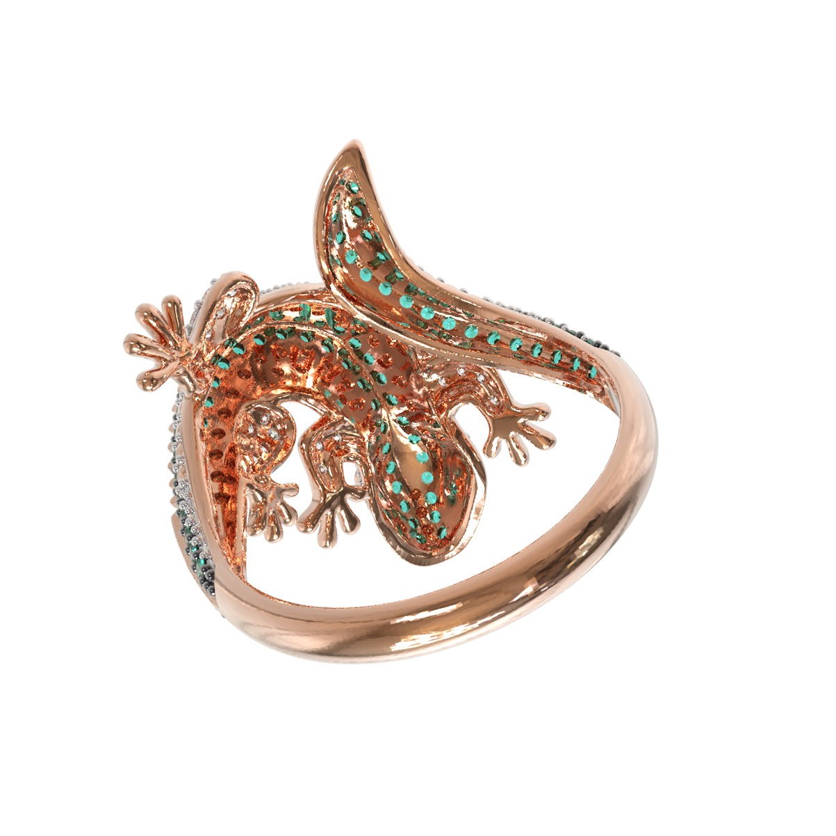 Кольцо из красного золота 585 пробы из коллекции De Luxe — Саламандры станет ярким акцентом в вашем образе. Этот ювелирный аксессуар, выполненный в оригинальном дизайне Саламандры, притягивает взгляды своей детализацией и насыщенной палитрой. Фигурка саламандры, обвивающая палец, декорирована россыпью из 174 фианитов круглой формы, создающих эффектную игру света.