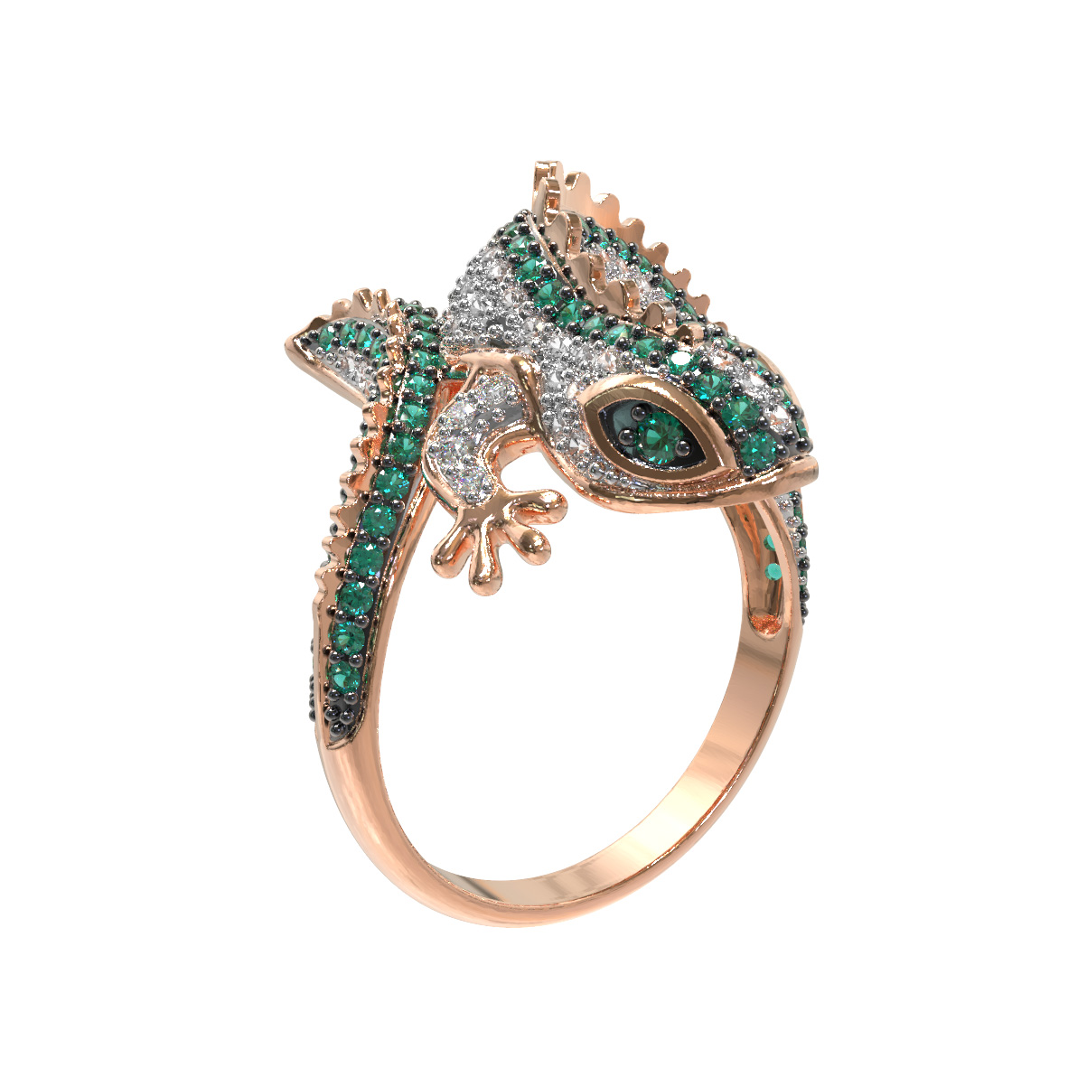 Контрастное сочетание красного золота и зеленых фианитов придает изделию особое благородство и глубину. Такое украшение одинаково органично смотрится как на женской, так и на мужской руке, подчеркивая индивидуальность владельца и безупречный вкус. Благодаря продуманной геометрии, кольцо комфортно сидит на пальце и подходит для ежедневного использования или создания запоминающегося вечернего образа.