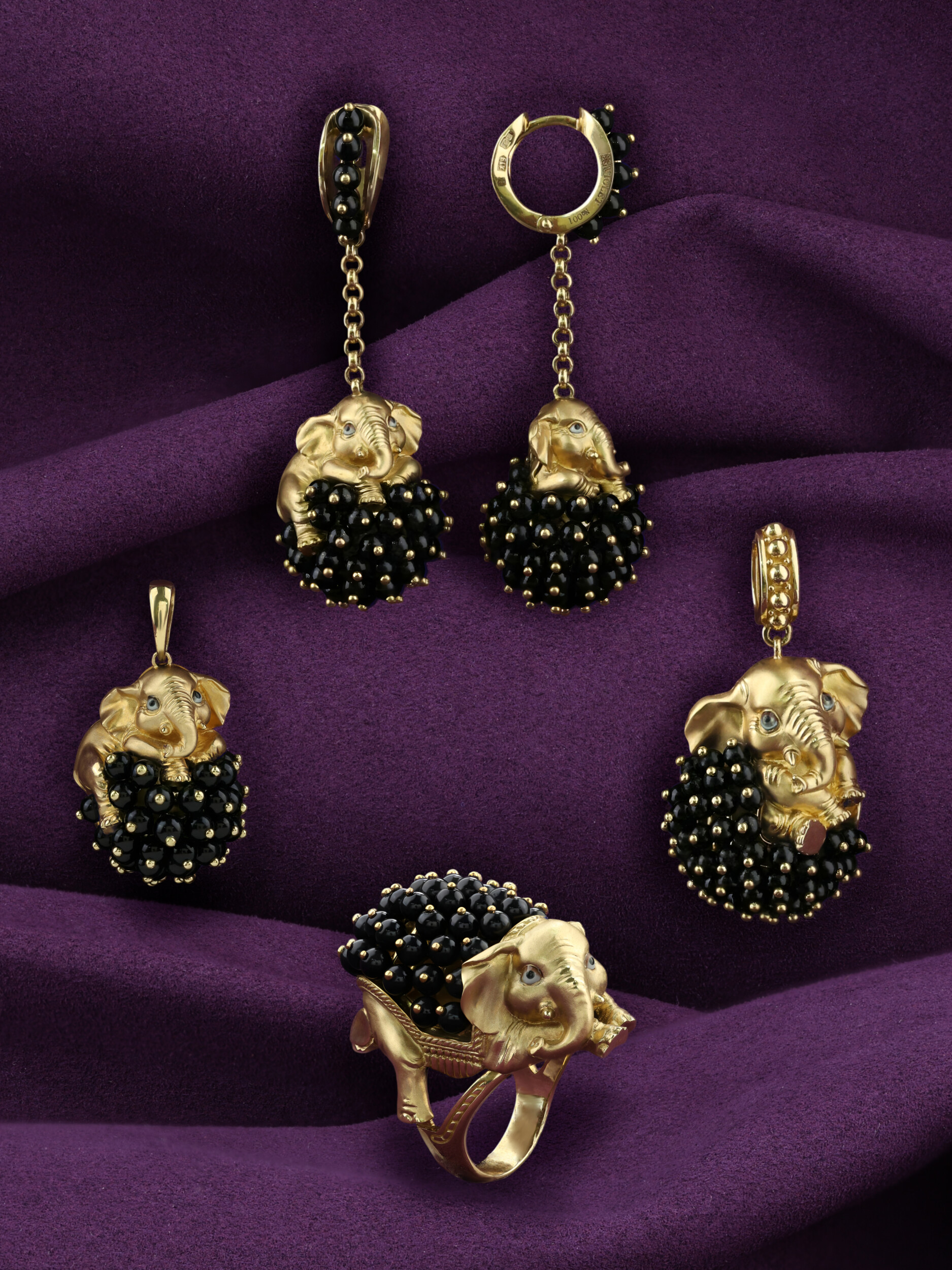 Кольцо из лимонного золота с эмалью и ониксом из коллекции De luxe Premium — Слонята — это ювелирный шедевр, воплощающий смелый дизайн и безупречное мастерство исполнения. Центральным элементом украшения стала фигура слона, выполненная из благородного лимонного золота 585 пробы. Детализация изделия впечатляет: реалистичные формы животного подчеркнуты изящными акцентами эмали, которые оживляют взгляд и придают украшению особенный характер.