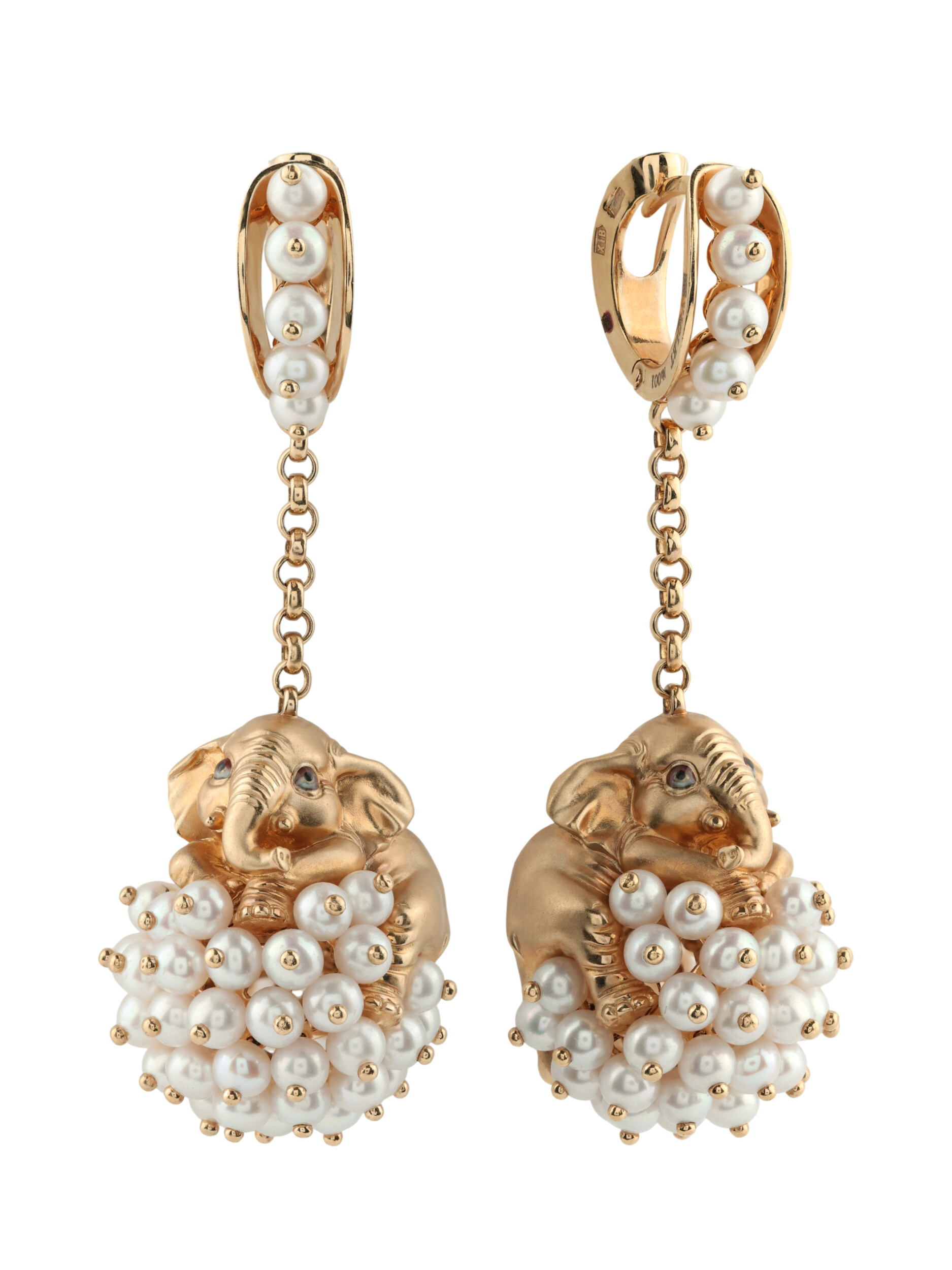 Роскошный декор дополняют 110 вставок из белого жемчуга круглой формы, которые создают завораживающую игру света и фактур. Разноцветная эмаль добавляет акценты, оживляя образ и делая его более динамичным. Эти серьги с дизайном в виде животных гармонично сочетают в себе классическую элегантность и смелые творческие решения. Они подходят для мужчин и женщин, ценящих эксклюзивные аксессуары, способные стать главным акцентом стильного образа.