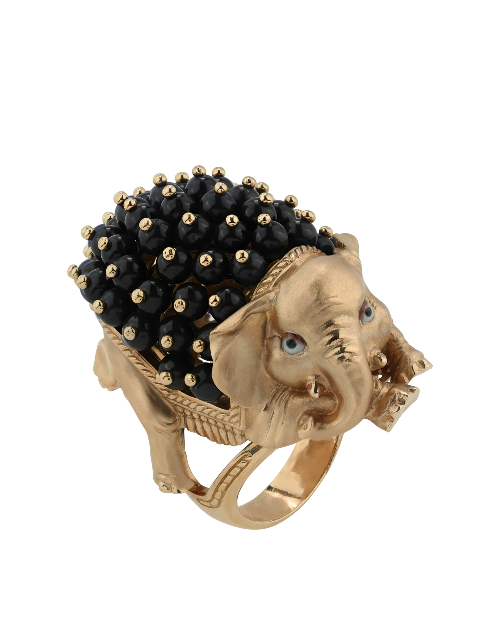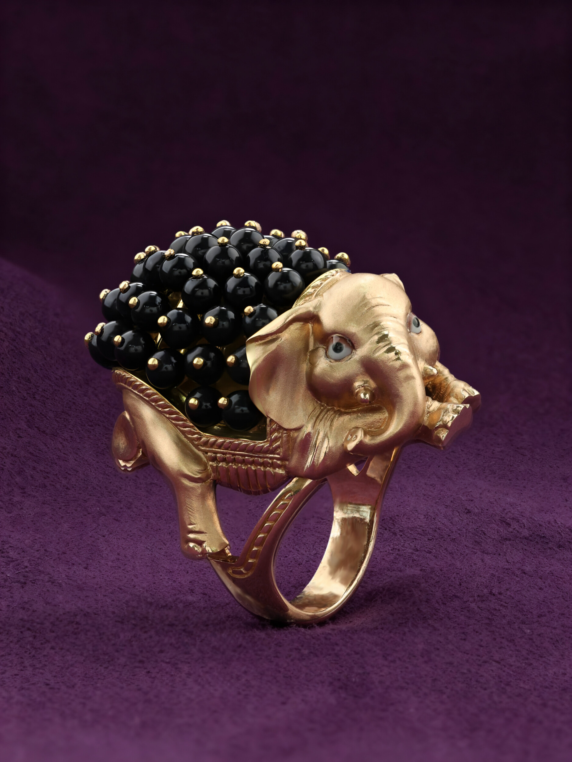 Особый шарм изделию добавляет инкрустация: кольцо украшено 46 вставками из оникса в форме бусин. Контрастное сочетание теплого оттенка красного золота и насыщенного черного цвета оникса создает благородный и стильный визуальный эффект. Разноцветные акценты эмали подчеркивают проработку каждой детали, делая украшение по-настоящему запоминающимся.