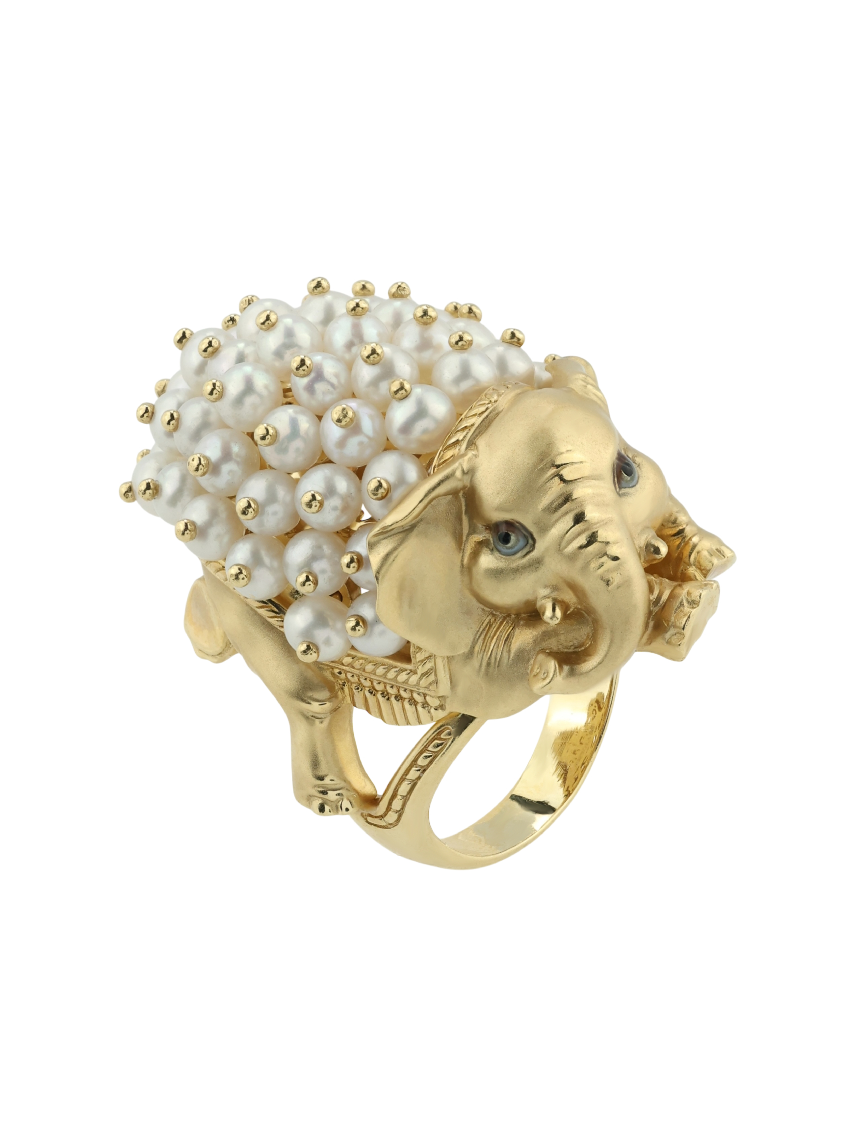 Представляем вашему вниманию уникальное кольцо из лимонного золота 585 пробы, которое станет ярким акцентом в вашей шкатулке. Это изделие входит в серию De luxe Premium — Слонята и выполнено в оригинальном дизайне, вдохновленном миром животных. Центральным элементом украшения выступает фигурка слоненка, проработанная до мельчайших деталей. Особый шарм изделию придает сочетание благородного лимонного золота с изысканными вставками: здесь гармонично переплетаются 46 круглых жемчужин белого цвета и элементы с разноцветной эмалью.