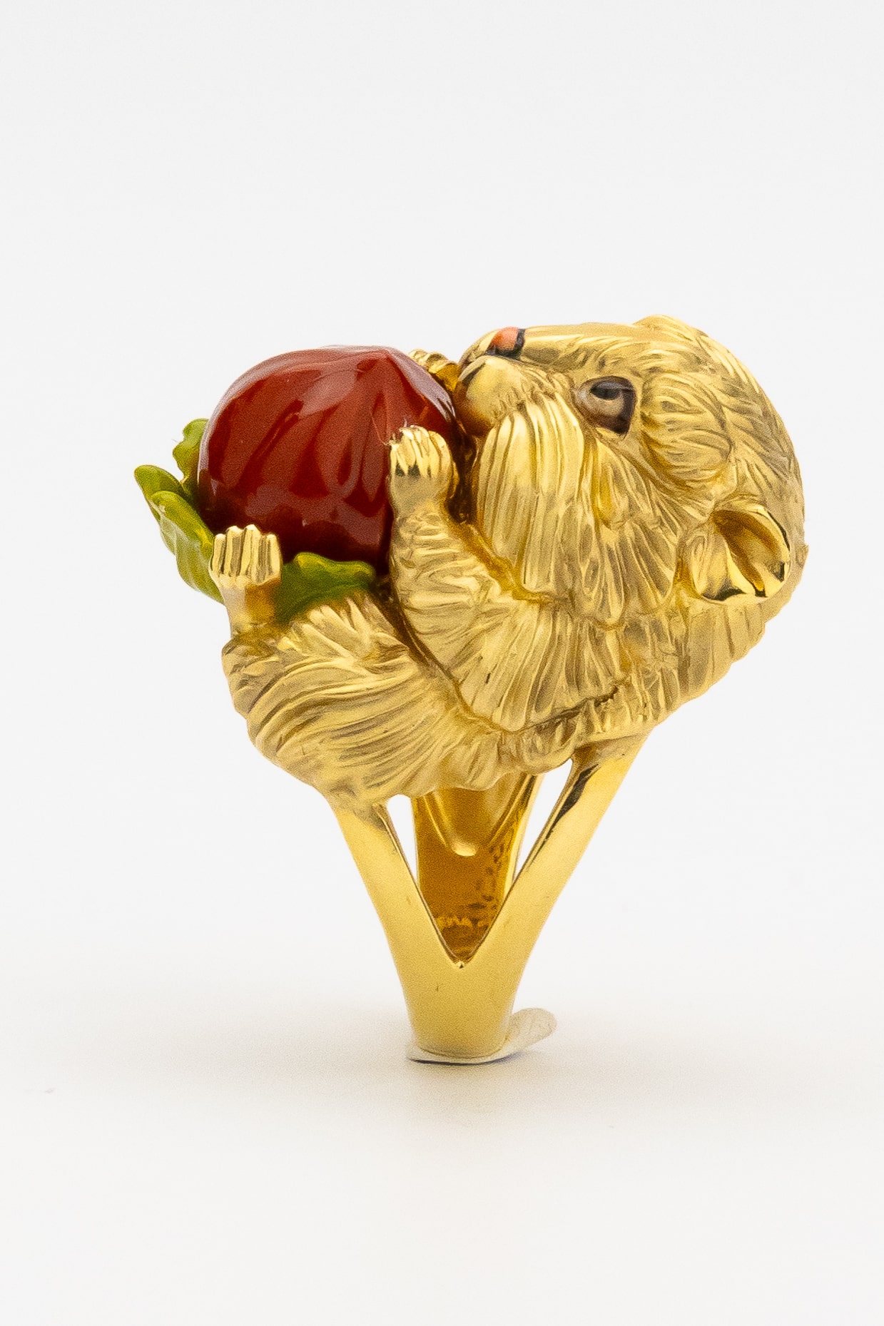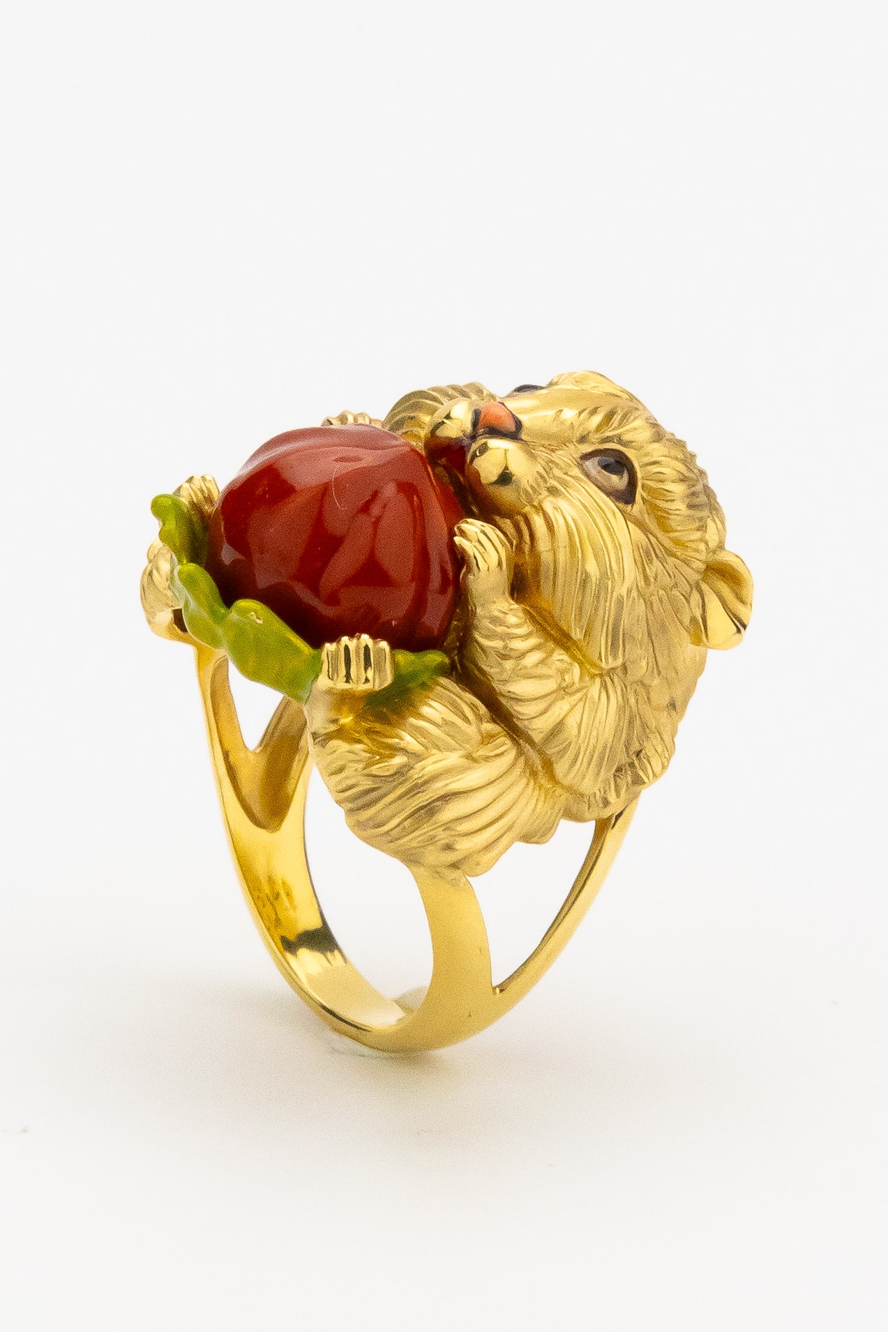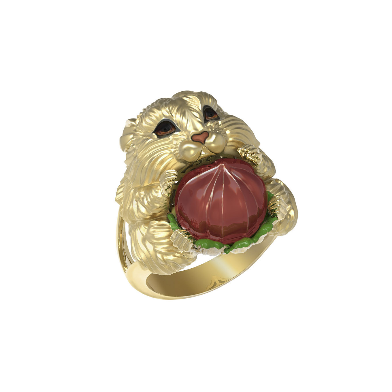 Оригинальное кольцо из лимонного золота 585 пробы из коллекции De luxe Premium — Хомяк станет ярким акцентом в вашем образе. Это ювелирное изделие, выполненное в необычном дизайне с изображением животного, подчеркивает индивидуальность и любовь к нестандартным решениям в украшениях. Центральным элементом дизайна является миниатюрная фигурка хомяка, которая приковывает к себе внимание детальной проработкой фактуры и выразительным исполнением.