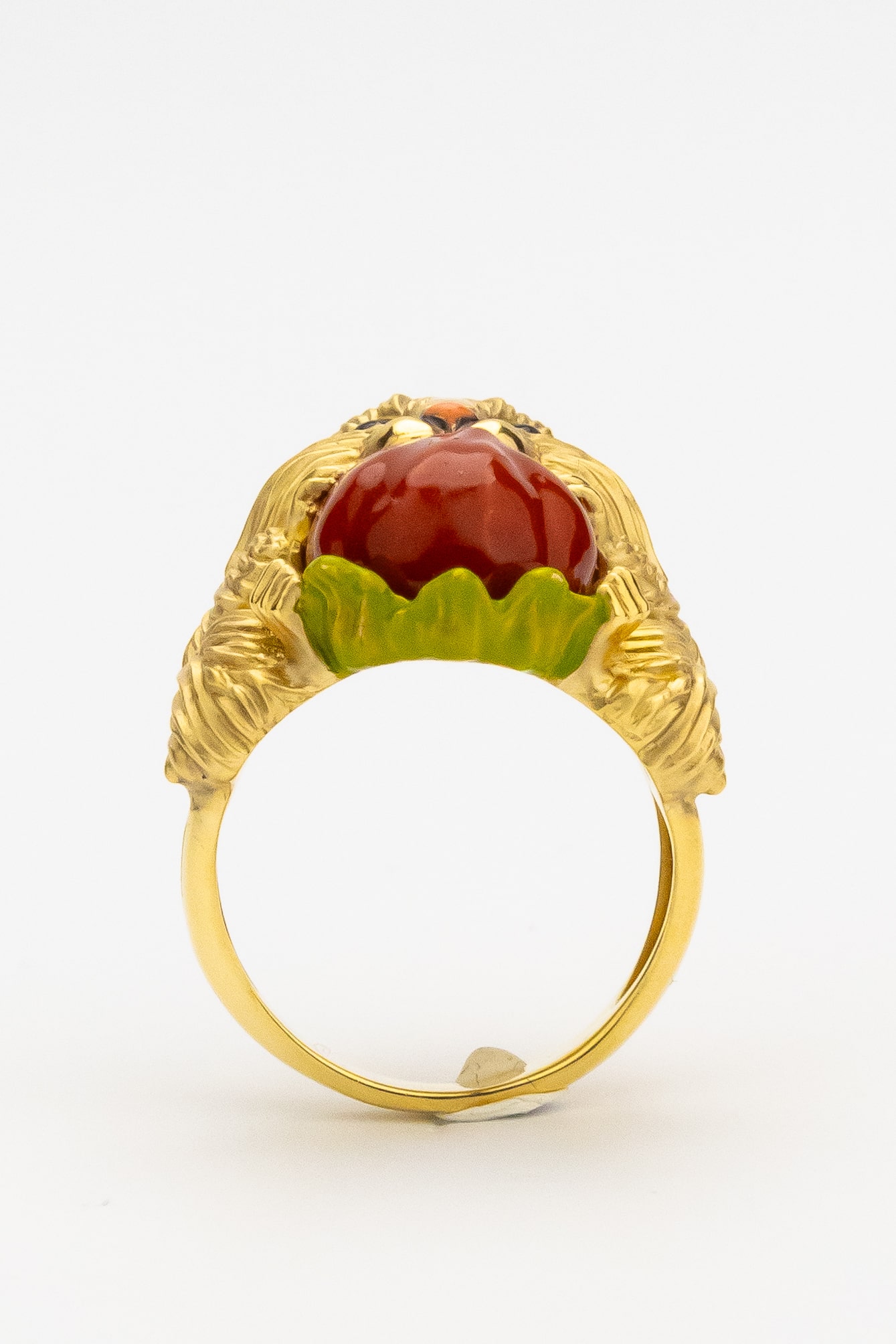 Благородный лимонный оттенок золота гармонично дополнен разноцветной эмалью, придающей украшению живой и эстетичный вид. Яркие акценты эмалевого покрытия делают кольцо по-настоящему заметным аксессуаром. Данная модель универсальна и подойдет как для женщин, так и для мужчин, которые ценят эксклюзивные и креативные ювелирные изделия.