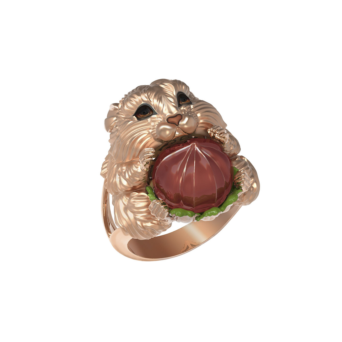 Оригинальное кольцо из золота с эмалью — это не просто ювелирное украшение, а настоящий арт-объект, который притягивает взгляды и подчеркивает индивидуальность. Модель из коллекции De luxe Premium — Хомяк выполнена в ярком и запоминающемся дизайне с анималистическими мотивами. Мастера детально проработали образ милого зверька, что делает изделие по-настоящему живым и выразительным.
