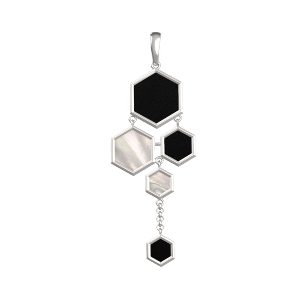 Подвеска из белого золота c ониксом и перламутром