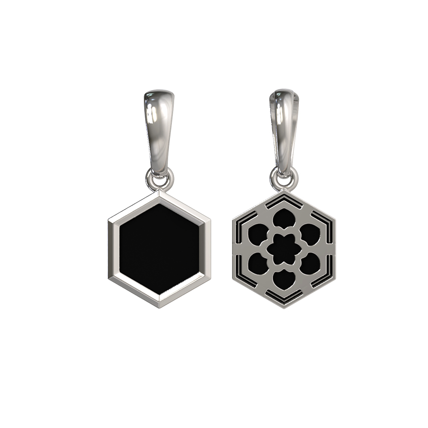 Подвеска из белого золота 585 пробы из коллекции De Luxe — Молекула станет акцентным дополнением вашего образа. Это украшение выполнено в концептуальном дизайне Молекула, который привлекает внимание своей строгостью и лаконичностью. Геометрическая форма подвески-шестигранника придает изделию современный и динамичный вид, а контрастное сочетание холодного блеска белого золота и глубокого черного цвета оникса создает эффектную игру света и тени. Вставка из натурального оникса идеально вписана в общую композицию, подчеркивая премиальный характер исполнения.