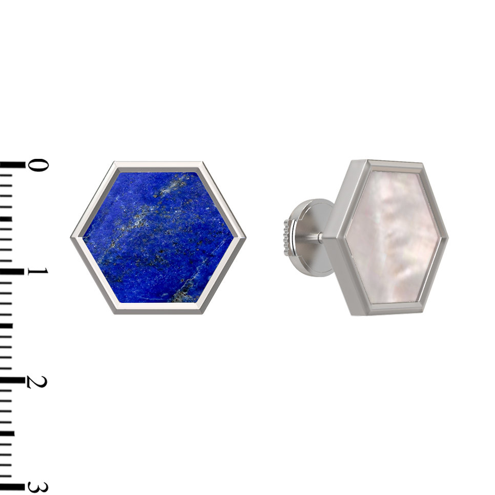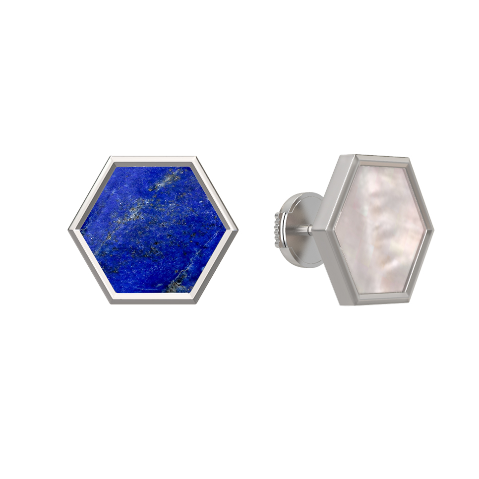 Серьги изготовлены из белого золота 585 пробы, которое придает конструкции особую прочность и холодный аристократичный блеск. В центре композиции — выразительная вставка шестигранной формы. Контрастное сочетание синего лазурита и нежного перламутра делает украшение многогранным и живым, позволяя ему переливаться при каждом движении. Лаконичный и универсальный стиль делает эту модель подходящей как для женщин, так и для мужчин, предпочитающих статусные аксессуары.