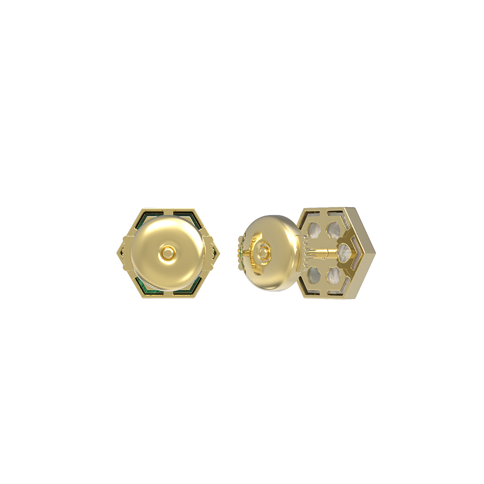 Серьги из лимонного золота 585 пробы из коллекции De Luxe — Молекула станут ярким акцентом вашего образа. Дизайн украшения, вдохновленный структурой молекулы, воплощает в себе современный подход к геометрии и природной красоте. Центром композиции является вставка в форме шестигранника, которая придает изделию динамичный и запоминающийся вид.