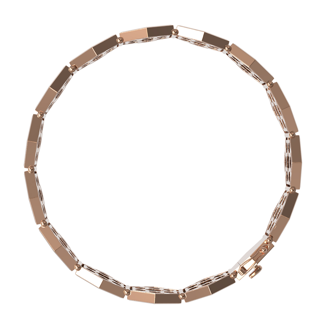 Представляем вашему вниманию изысканный золотой браслет из коллекции De Luxe — Молекула, воплощающий эстетику современной геометрии. Это ювелирное украшение выполнено из красного золота 585 пробы, что придает изделию теплое, благородное сияние. Дизайн модели вдохновлен структурой молекулы, где центральным элементом стали 14 вставок идеальной формы шестигранника. Такое архитектурное решение делает аксессуар заметным акцентом в любом образе.
