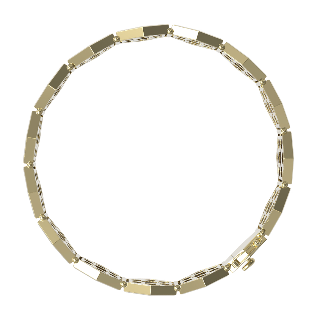 Элегантный и современный браслет из лимонного золота 585 пробы — это воплощение гармонии и геометрической точности. Украшение входит в коллекцию De Luxe — Молекула, вдохновленную структурой молекул, что отражается в необычном дизайне изделия. Браслет состоит из 14 вставок в форме шестигранника, которые чередуются между собой, создавая эффектный визуальный ритм на запястье.