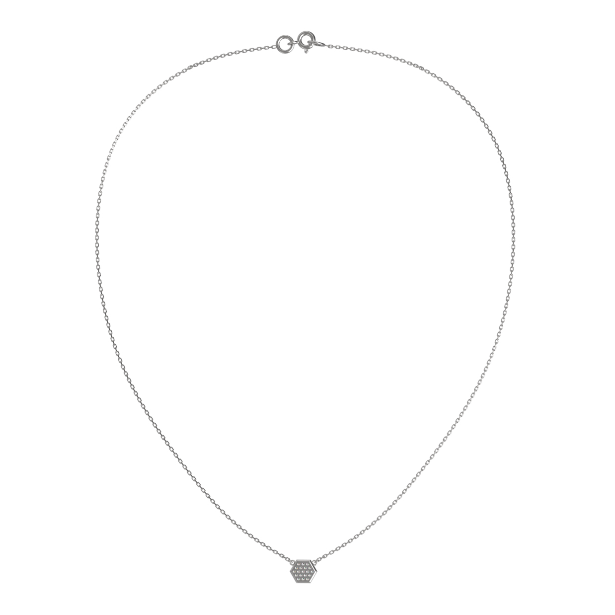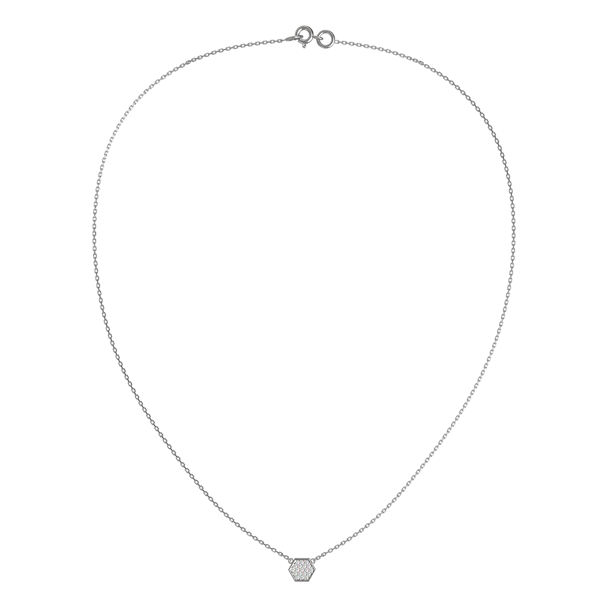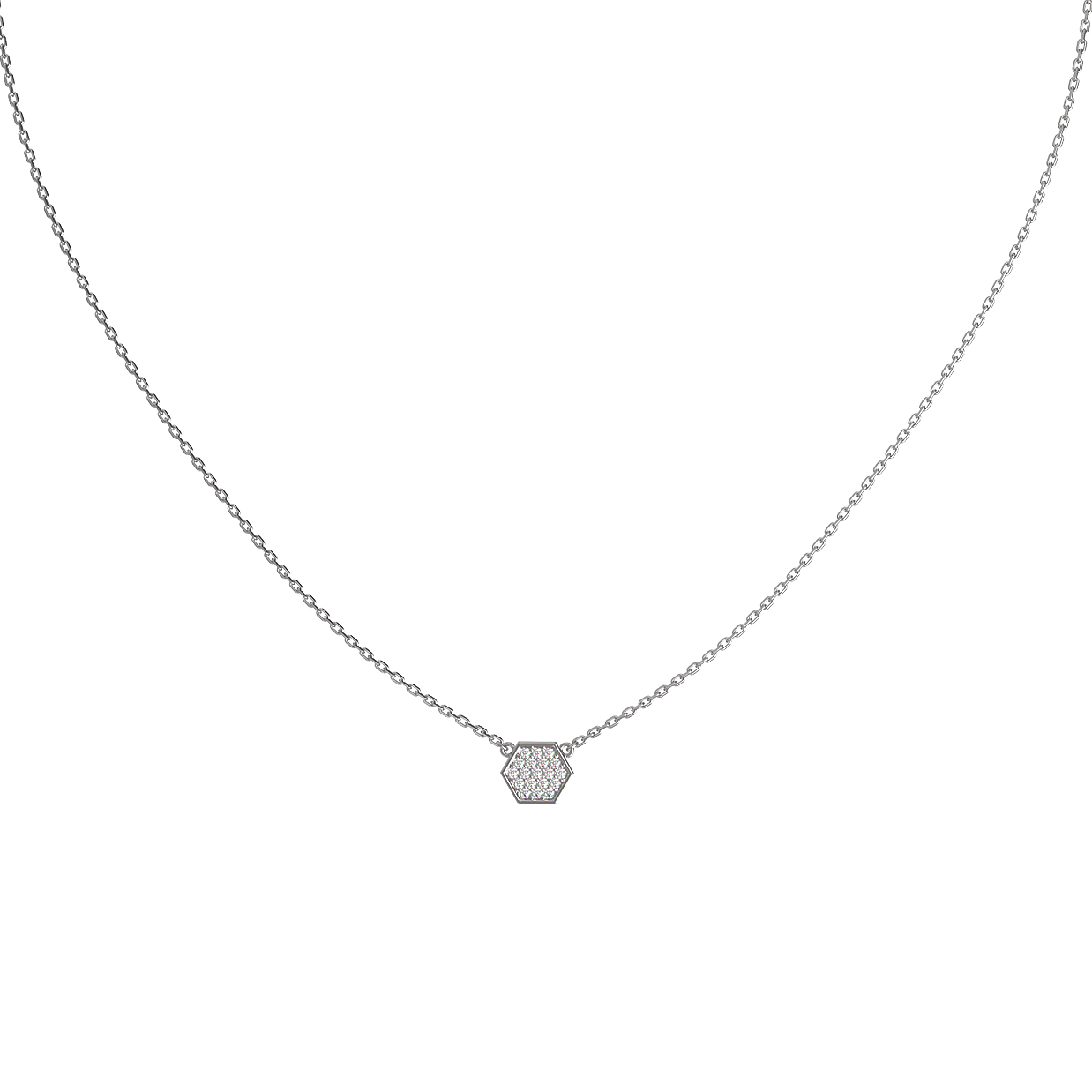 Элегантное колье из белого золота 585 пробы станет утонченным дополнением вашего образа. Это украшение из коллекции De Luxe — Молекула выполнено в актуальном дизайне — Молекула, который подчеркивает минималистичную эстетику и современный взгляд на ювелирные традиции. Центральный элемент в форме правильного шестиугольника гармонично дополнен россыпью из 57 бриллиантов круглой огранки. Белые камни изысканно сияют на фоне благородного белого золота, создавая выразительную игру света при каждом движении.