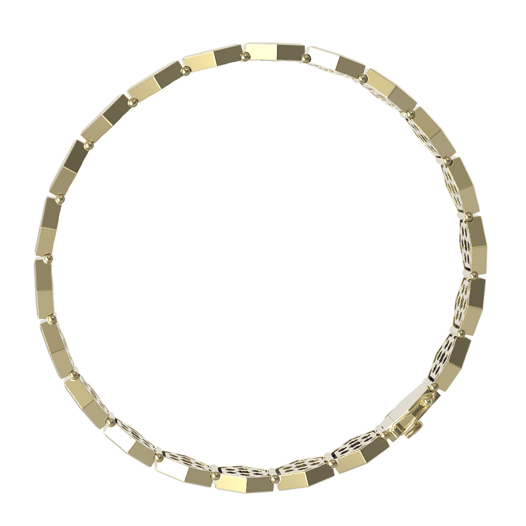 Откройте для себя эстетику ювелирного искусства с браслетом из лимонного золота 585 пробы, вдохновленным прогрессивным дизайном коллекции De Luxe — Молекула. Это украшение воплощает концепцию «Молекула», где гармония форм встречается с природной красотой материалов. Основным декоративным элементом изделия стала геометрическая форма вставок — шестигранник, создающая четкий и современный ритм.
