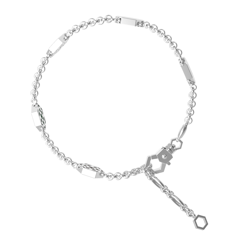 Ищете украшение, которое подчеркнет вашу индивидуальность и безупречный вкус? Браслет из коллекции De Luxe — Молекула — это гармоничное сочетание ювелирного мастерства и современной эстетики. Изделие выполнено из благородного белого золота 585 пробы, чей холодный блеск идеально дополняет природную красоту вставок.