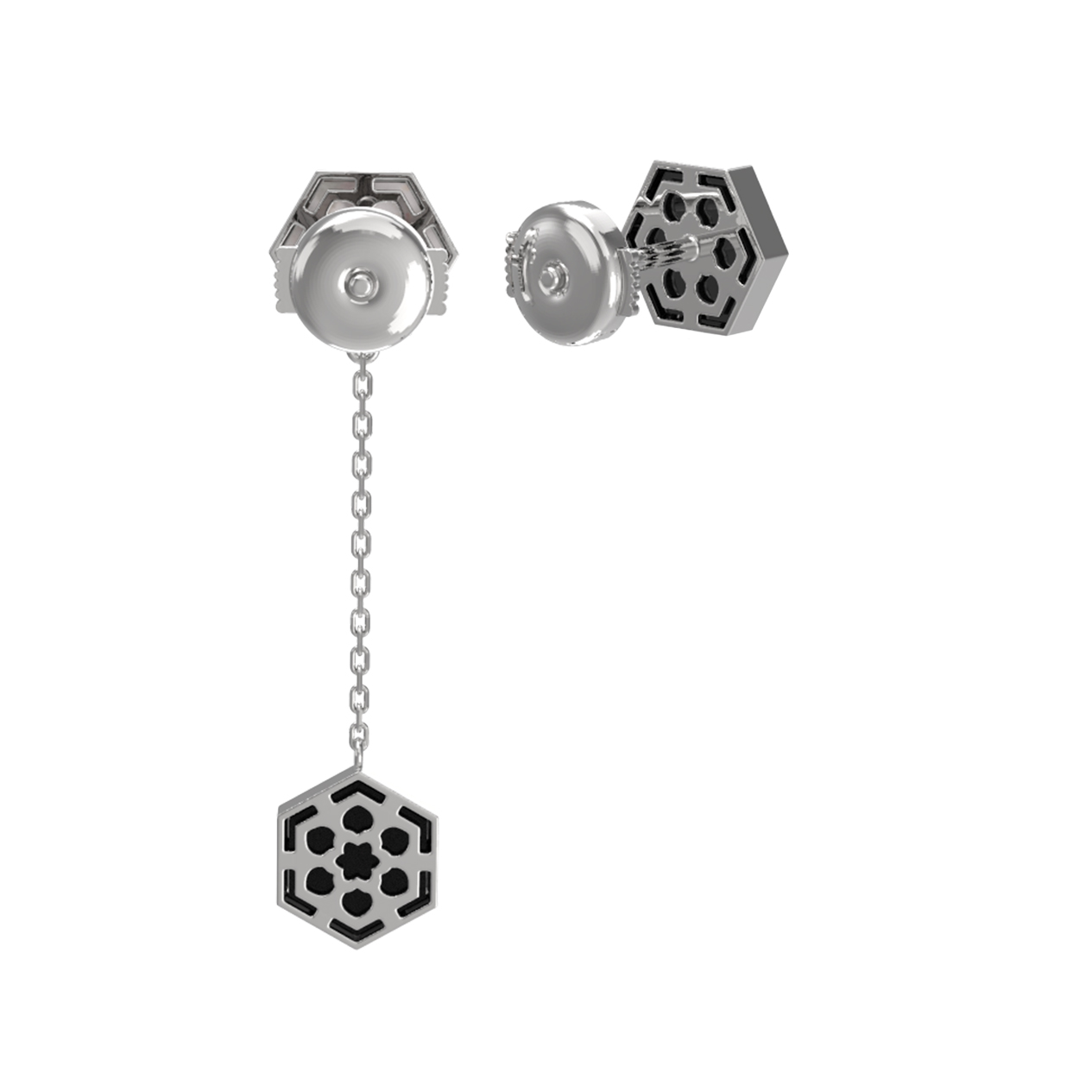 Особое очарование серьгам придает гармоничное сочетание контрастных материалов. Натуральный оникс глубокого черного цвета встречается с нежным перламутром, создавая выразительную игру света и тени. В дизайне использовано 2 вставки, которые подчеркивают благородный блеск белого золота. Конструкция изделия продумана до мелочей: лаконичная форма и изящная цепочка делают их динамичным аксессуаром, который притягивает взгляды и подчеркивает индивидуальность.