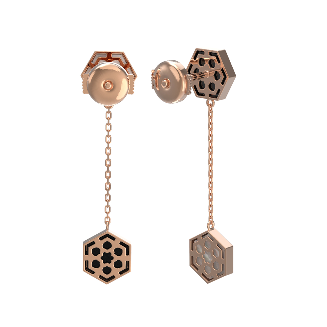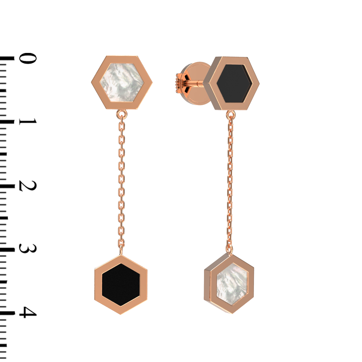 Эти серьги подходят как для женщин, так и для мужчин, предпочитающих стильные унисекс-аксессуары. Модель станет ярким дополнением вашего гардероба и отлично сочетается с другими украшениями. Рассмотрите возможность покупки в составе комплекта для создания завершенного образа. Красное золото в сочетании с черным ониксом и нежным перламутром делает эти серьги универсальным выбором для любого случая.