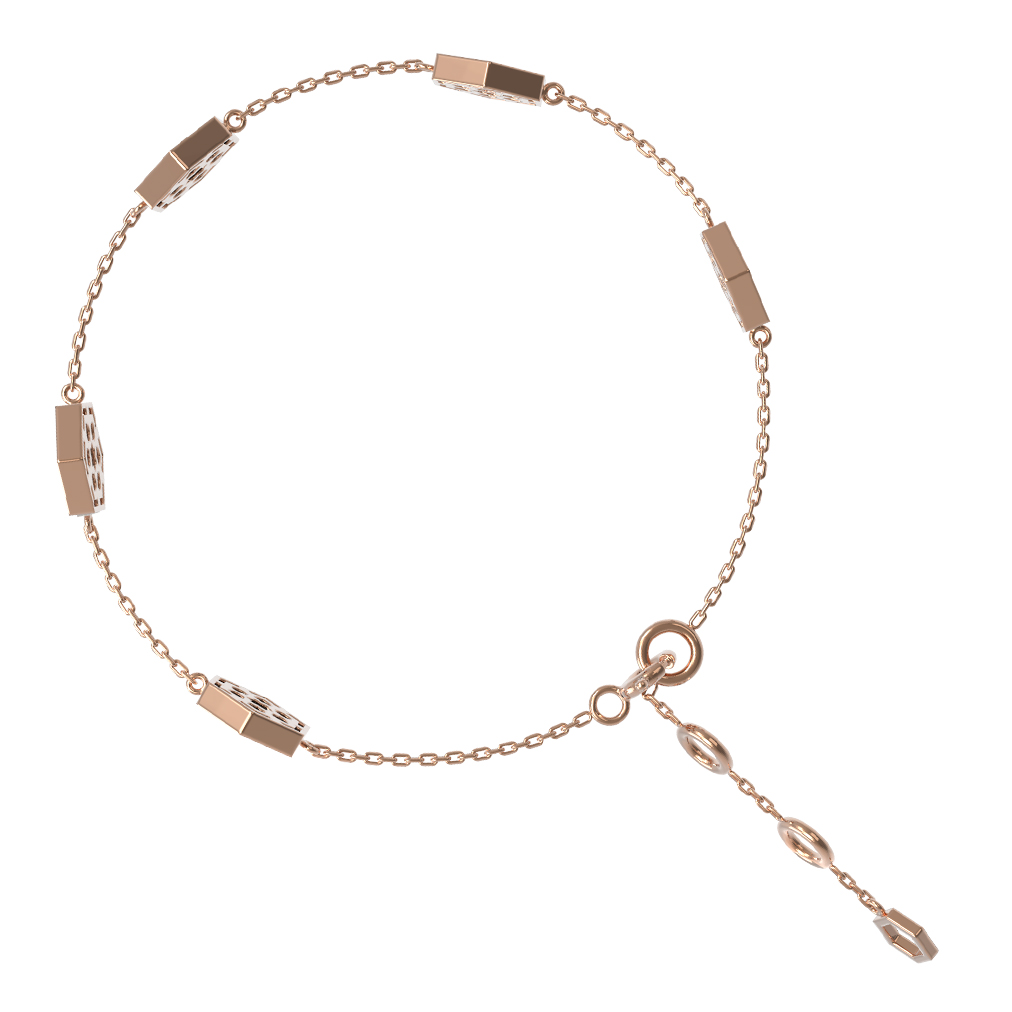 Это универсальное ювелирное украшение подойдет как для женщин, так и для мужчин, предпочитающих лаконичные, но выразительные аксессуары. Деликатная цепочка в сочетании с геометрическими вставками выглядит сдержанно и статусно, подчеркивая безупречный вкус владельца. Благодаря выверенному дизайну, этот браслет отлично смотрится как самостоятельный аксессуар, так и в составе гармоничного комплекта украшений. Красное золото высокого качества обеспечивает долговечность и благородный блеск изделия на долгие годы. Изысканность линий и внимание к каждой детали делают этот аксессуар идеальным выбором для ценителей эксклюзивных ювелирных решений.