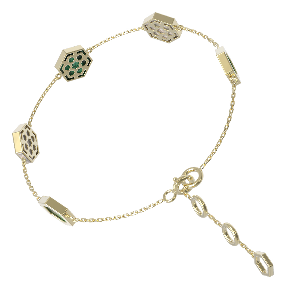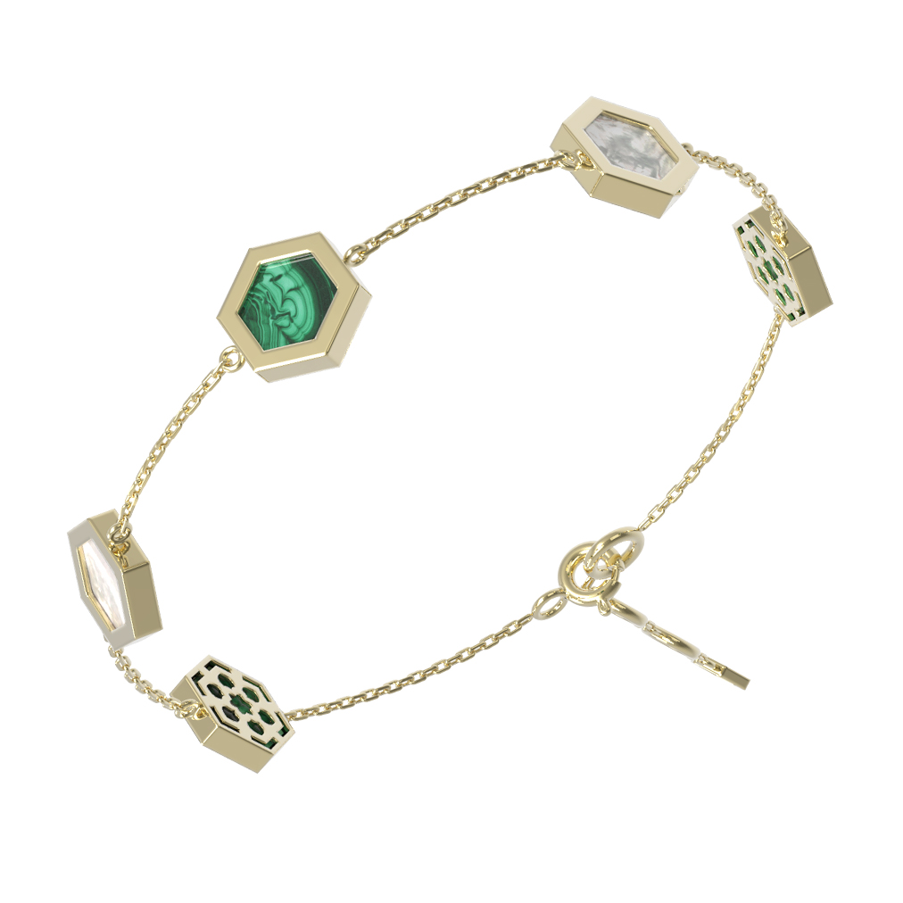 Этот браслет — универсальный аксессуар, созданный как для женщин, так и для мужчин, которые ценят лаконичную роскошь и необычные формы. Мастера проработали каждую деталь, чтобы вставка шестиугольной формы смотрелась безупречно на тонкой цепочке, добавляя образу интеллектуальный и статусный оттенок. Использование натуральных камней делает каждое изделие особенным и выразительным.