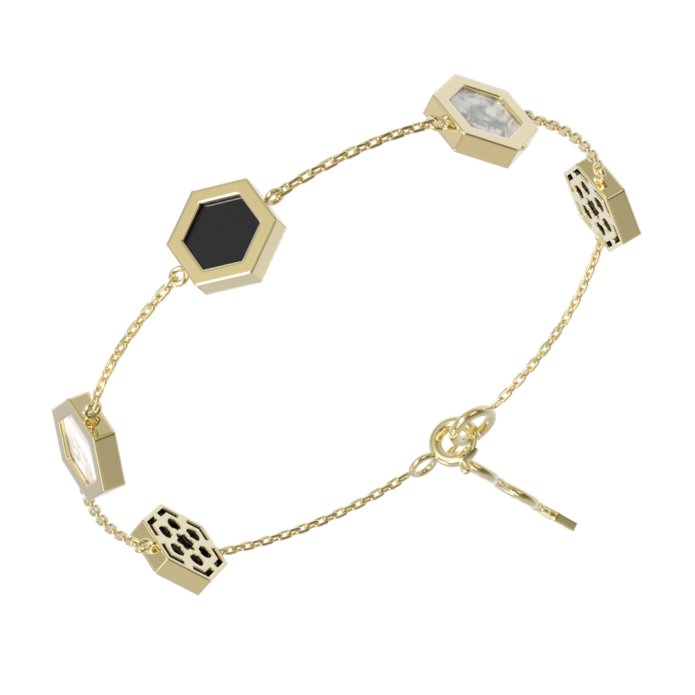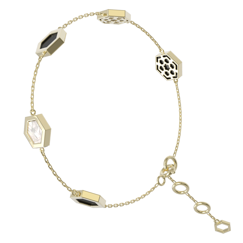 Браслет из лимонного золота c ониксом и перламутром