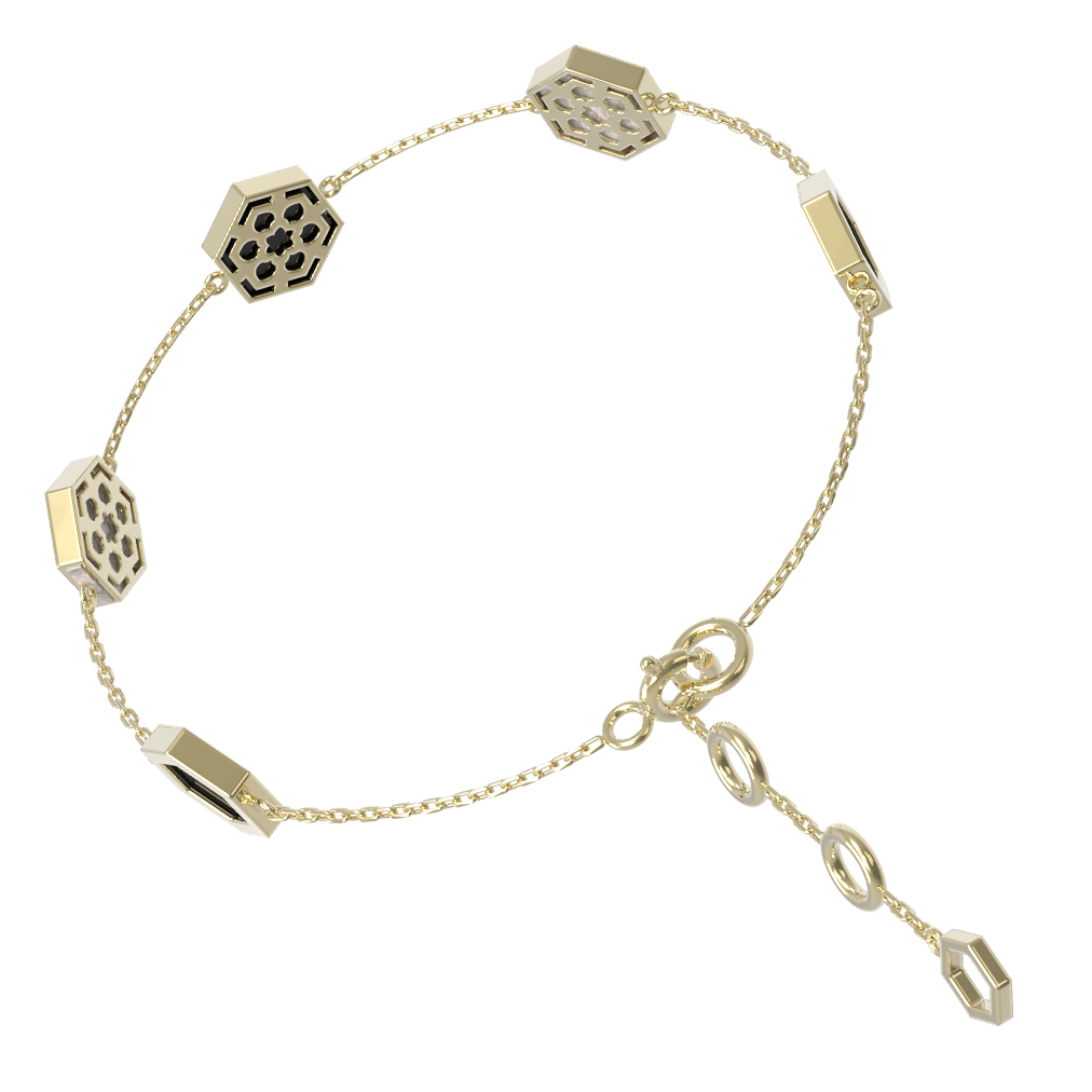 Элегантный браслет из лимонного золота 585 пробы из коллекции De Luxe — Молекула станет безупречным акцентом в вашем образе. Дизайн изделия вдохновлен структурой молекулы, что придает украшению современный и концептуальный характер. Четкие геометрические линии подчеркиваются формой вставок в виде шестигранника.