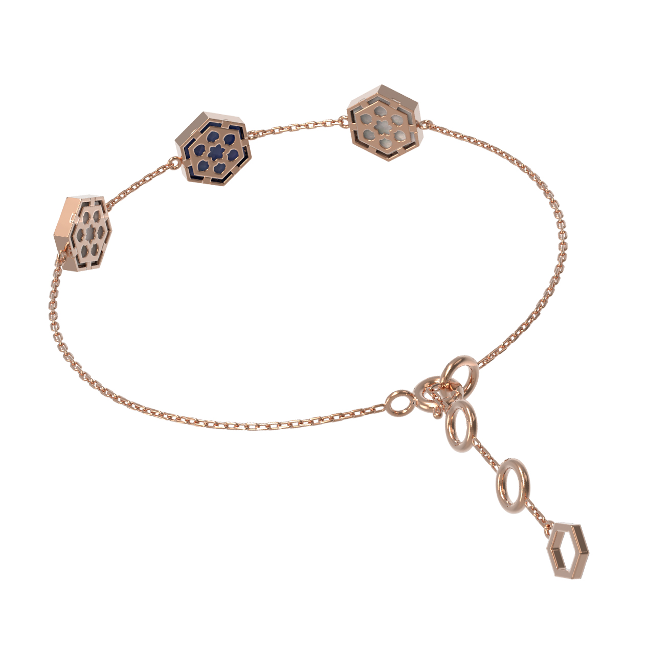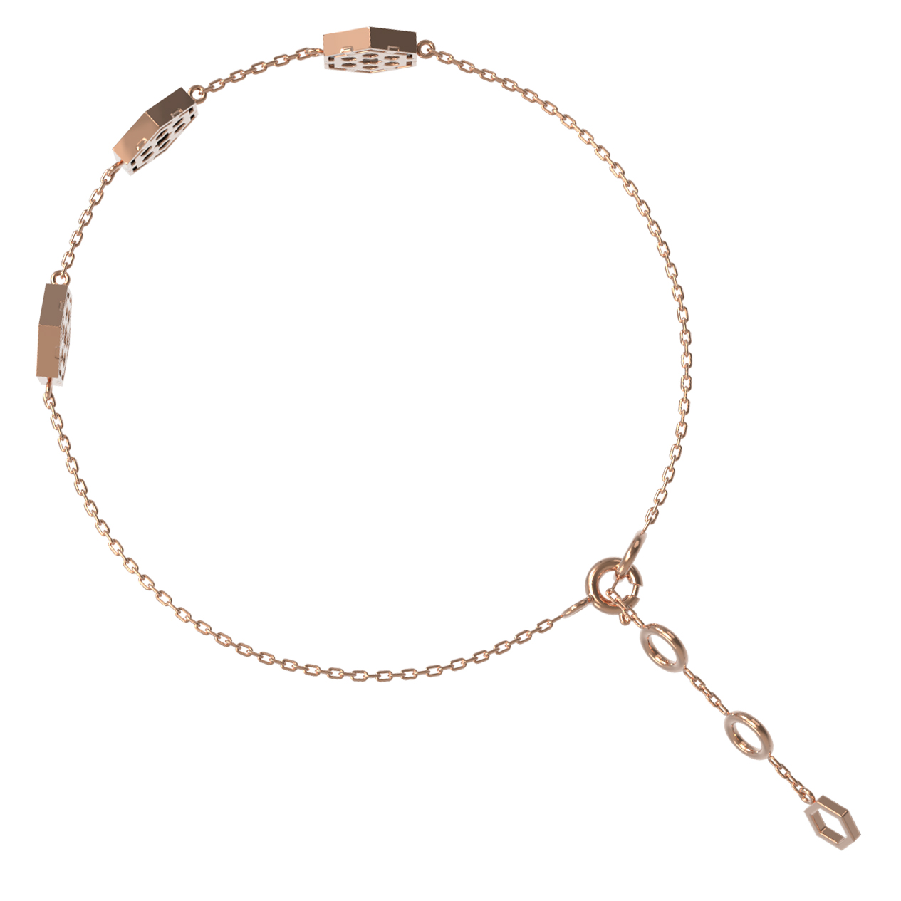 Элегантный и современный браслет из красного золота 585 пробы — украшение, которое подчеркнет ваш безупречный вкус. Данная модель входит в коллекцию De Luxe — Молекула, вдохновленную геометрией природных форм и концепцией дизайна «Молекула». Изделие представляет собой тонкую изящную цепочку, дополненную вставками необычной формы — каждая из них выполнена в виде правильного шестигранника.