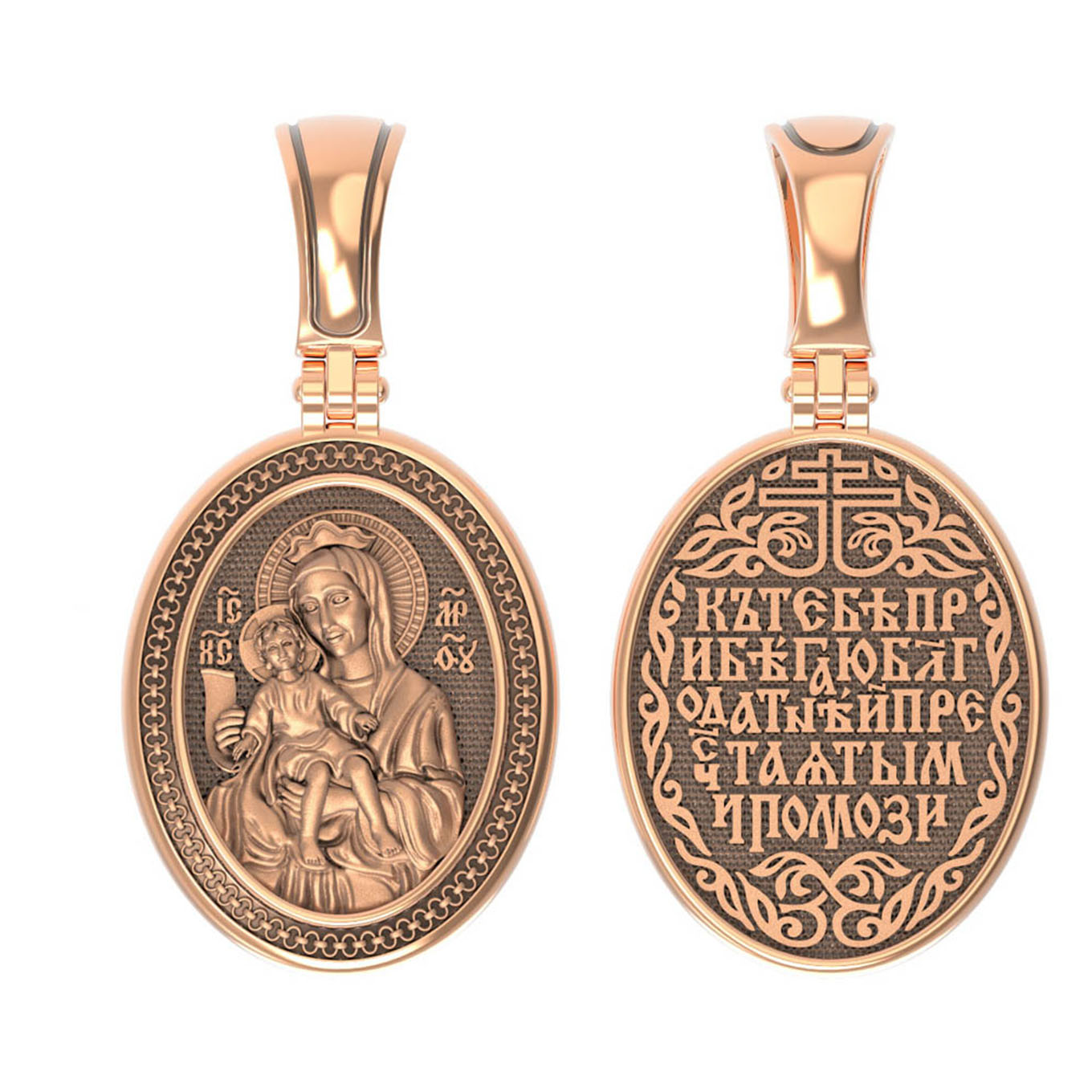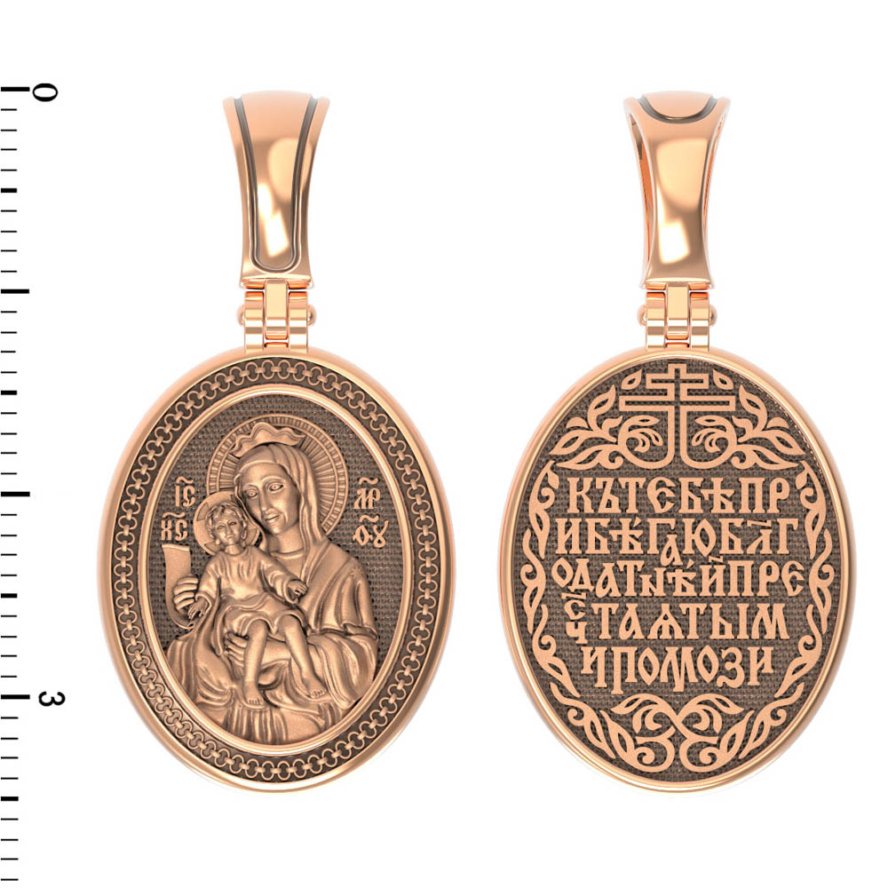 На обороте образка написана молитва:«Ныне к Тебе прибегаю, Пречистая Дево, спаси мя мольбами Твоими».