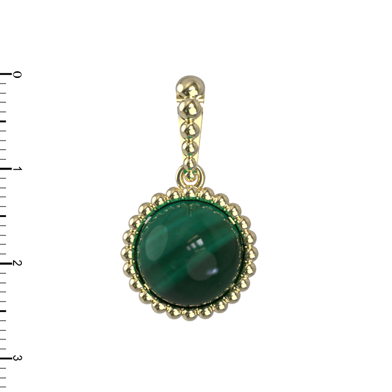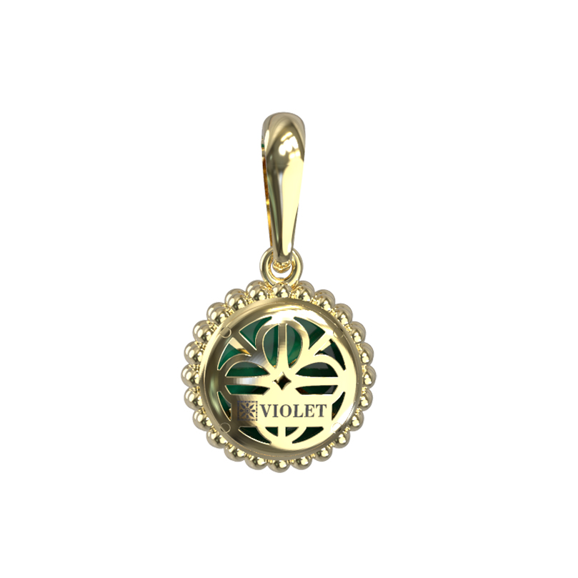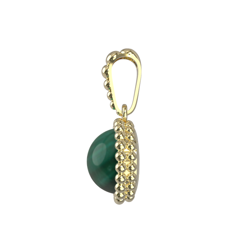 Материалом для создания подвески послужило качественное лимонное золото 585 пробы. Металл тёплого лимонного оттенка идеально подчеркивает красоту единственной вставки из малахита, создавая гармоничный и завершенный образ. Тщательная проработка деталей дизайна придает ювелирному изделию особую выразительность и статусность. Универсальный дизайн позволяет носить эту подвеску как женщинам, так и мужчинам, дополняя повседневные или вечерние наряды.
