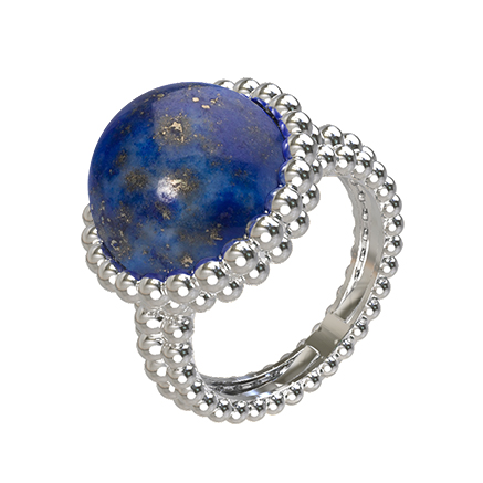 Дизайн изделия отличается особой текстурой, напоминающей россыпь жемчужин, что придает кольцу выразительность и визуальный объем. Благодаря универсальной эстетике и выверенным линиям, данное ювелирное изделие подходит как для женщин, так и для мужчин, позволяя создавать стильные и сдержанные сочетания. Белое золото идеально подчеркивает глубину синего лазурита, делая украшение заметным даже в повседневном гардеробе.