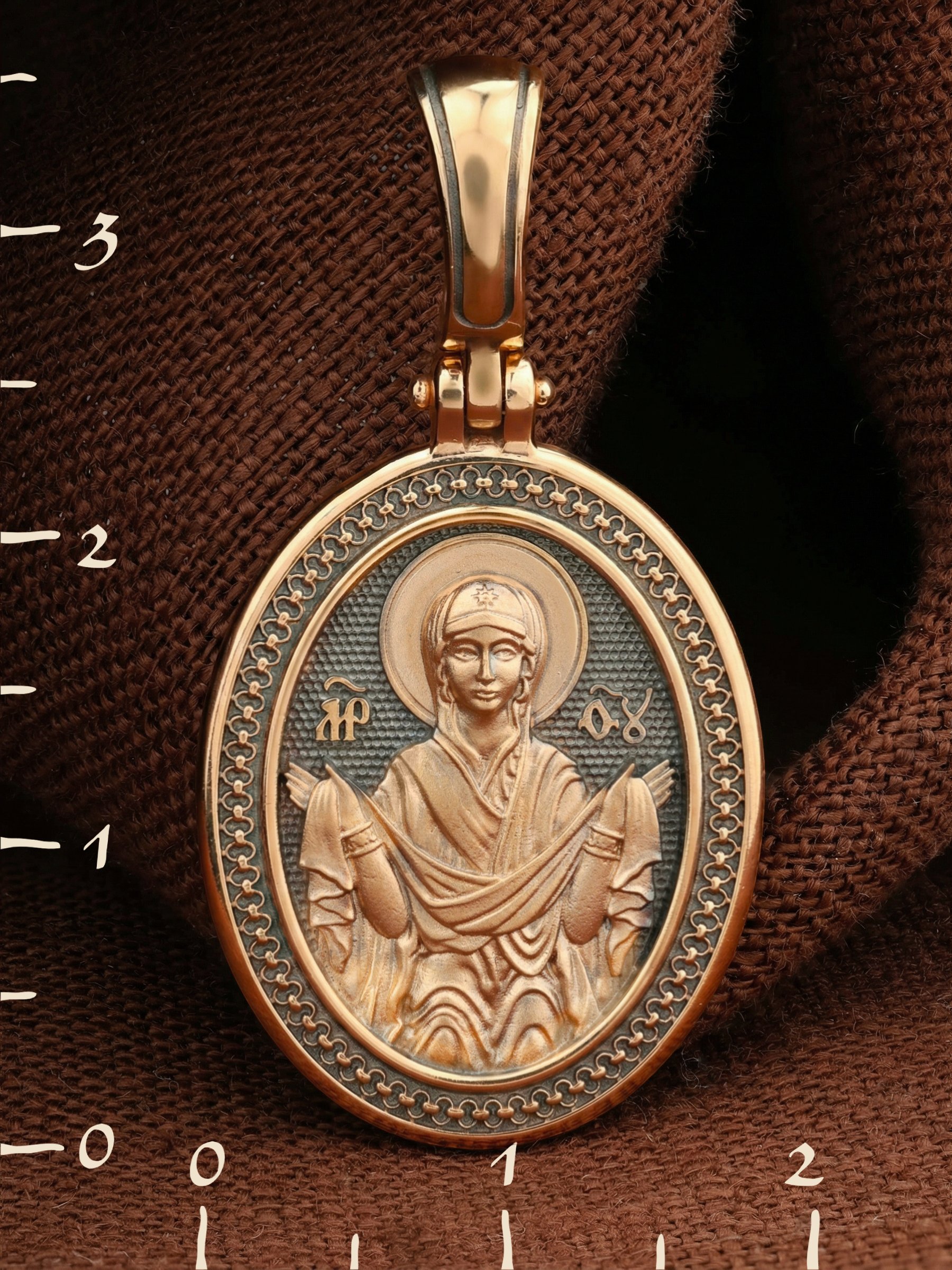 На лицевой части образка изображена икона Покров Пресвятой Богородицы. Праздник Покрова Божией Матери является воспоминанием чуда, которое произошло во Влахнернской церкви 1 (14) октября 910 года: Пресвятая Богородица явилась верующим над алтарем храма и распростерла над ними Свое покрывало. В этот день Божья Матерь открыла людям, что Она является Ходатаицей за них перед Богом. Богородица простирает Свой молитвенный покров над всеми православными христианами и умоляет Сына Своего о даровании вечного спасения каждому человеку.