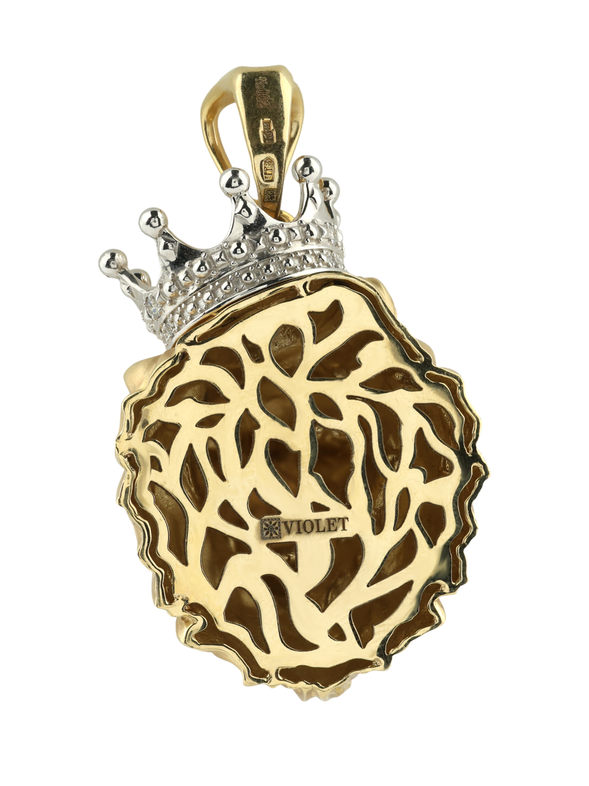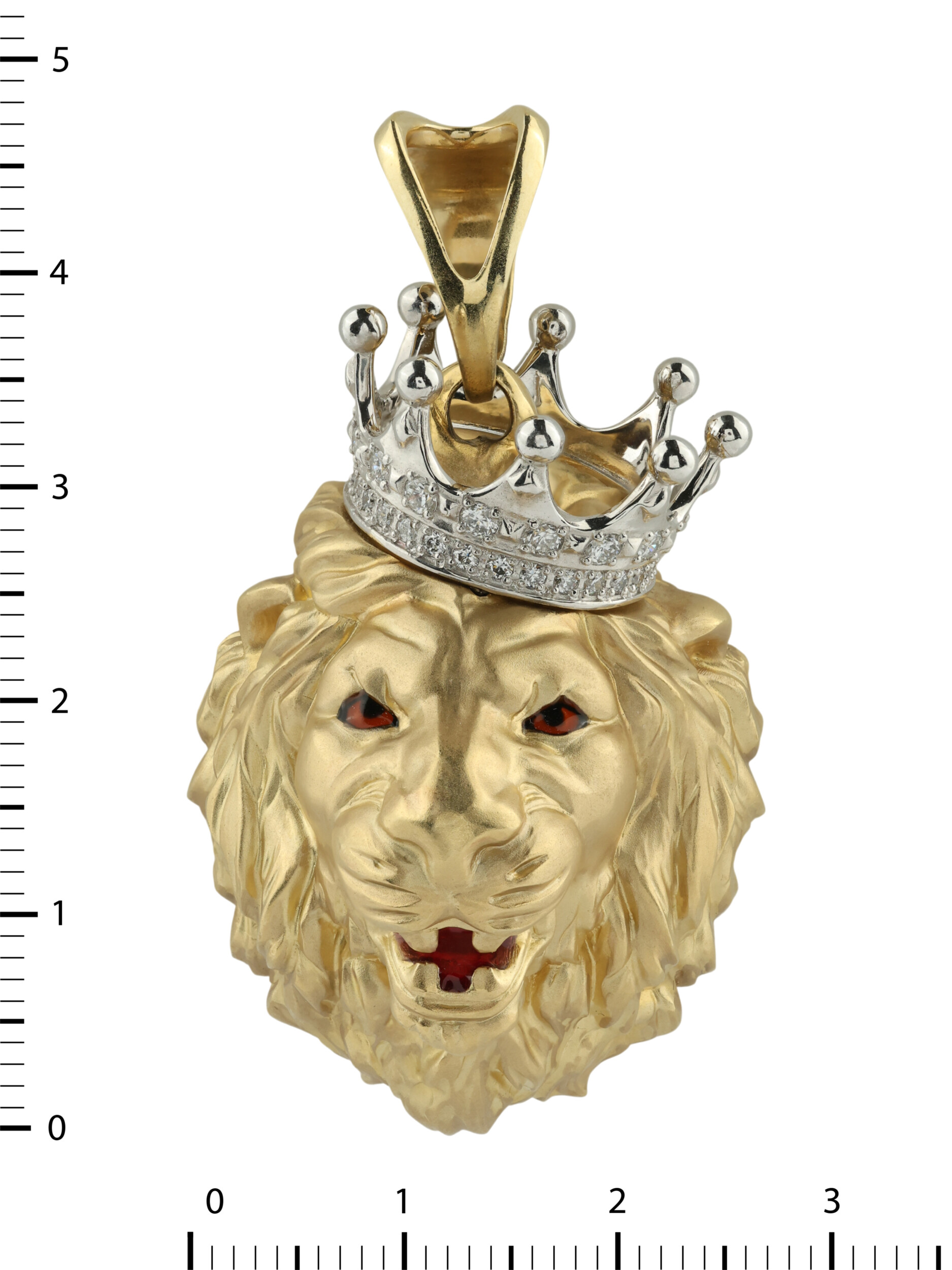 Роскошь и блеск подвеске добавляют 30 бриллиантов круглой формы с белым оттенком, инкрустированные в корону. Контраст благородного лимонного золота, разноцветной эмали и сияния драгоценных камней делает это украшение притягательным акцентом вашего образа. Данная модель может стать частью эксклюзивного комплекта, дополняя ваш стиль и демонстрируя безупречный вкус. Надежная подвеска станет идеальным подарком для мужчины, который стремится к лидерству и предпочитает качественные ювелирные изделия.
