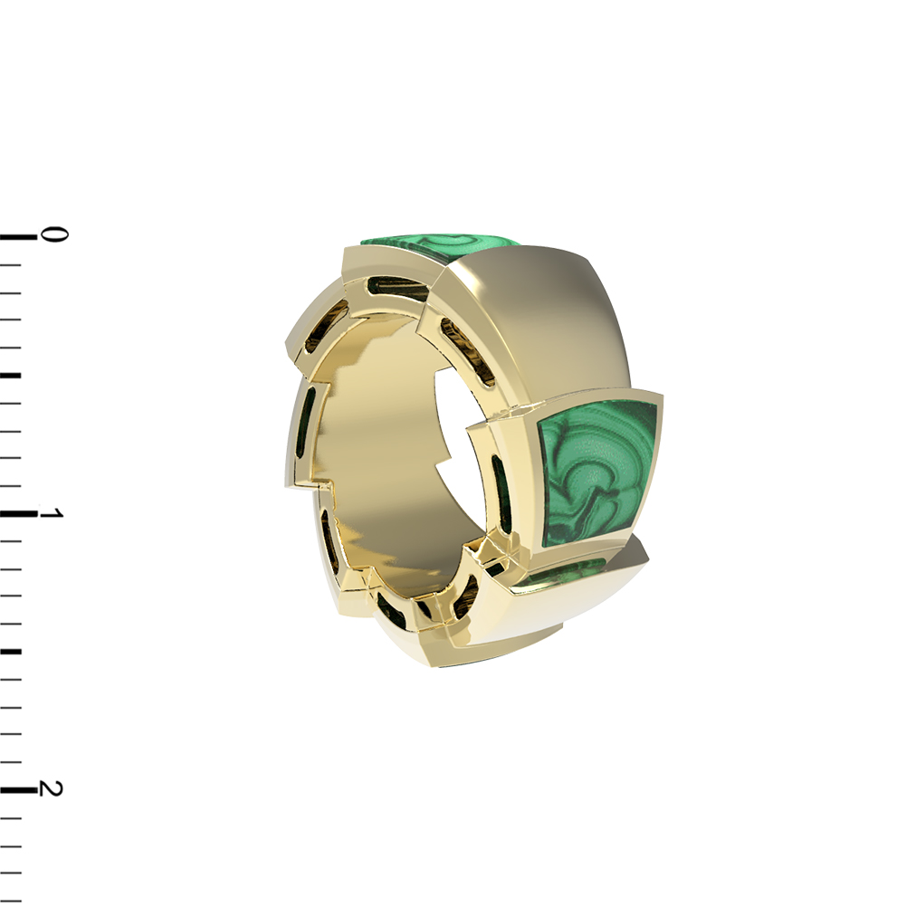 Данная подвеска отличается своей универсальностью и лаконичной геометрией. Благодаря сдержанному, но концептуальному исполнению, украшение подойдет как для женщин, так и для мужчин, добавляя в облик нотки статуса и индивидуальности. Глубина зеленого оттенка малахита гармонично сочетается с теплым блеском драгоценного металла, создавая визуально выверенную композицию.
