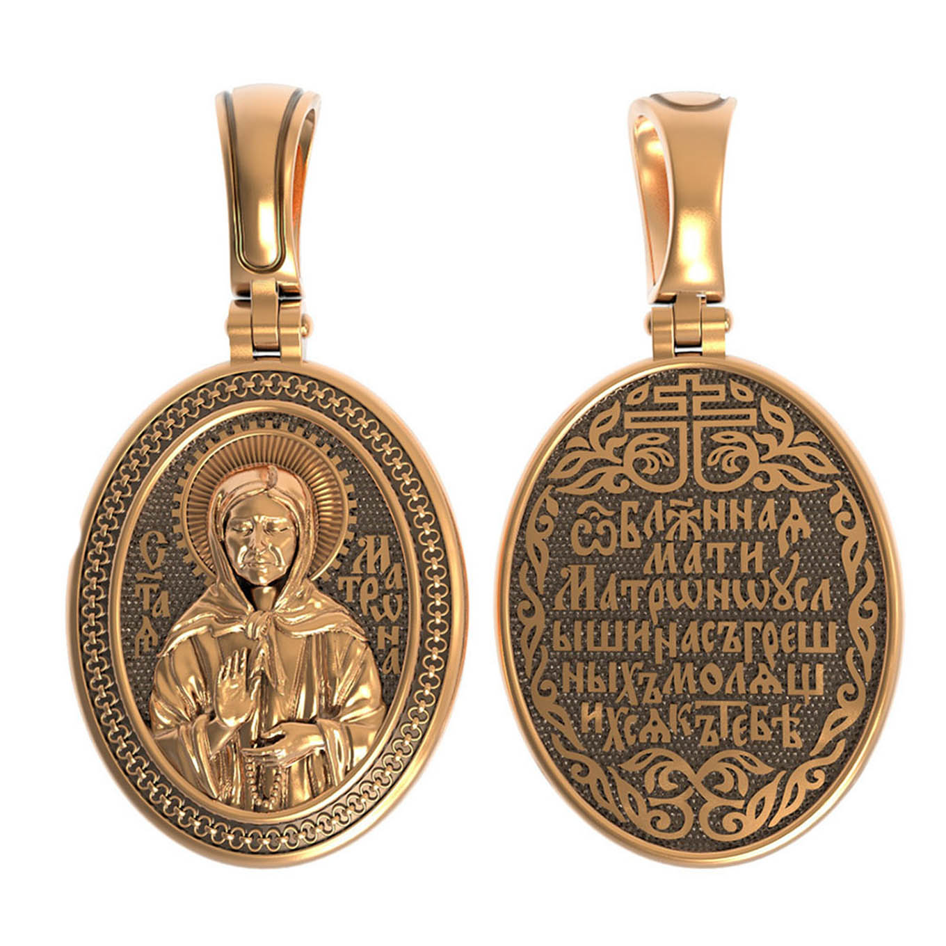 На лицевой стороне образка изображена Святая Матрона Московская.